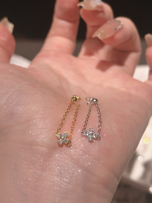繊細なチェーンの先に、小さな花モチーフが揺れる可憐なデザイン。 華奢な手元にさりげない輝きを添えてくれる、女性らしさあふれるチェーンリングです。 チェーン部分は長さ調整が可能で、お好きな指に合わせて着けられるフリーサイズ仕様。 ひとつ加えるだけで、手元にやわらかな印象と遊び心をプラスできます。 素材 ・全体:S925シルバー(アレルギー対応・変色しにくい) ・ストーン:高品質ジルコニア カラー ・ゴールド ・シルバー サイズ ・フリーサイズ(調節可能) シンプルながらも、可憐な存在感が光る大人可愛いリングです。 ⋆。°✩ ┈┈┈┈┈┈┈┈ ✩°。⋆ 金属アレルギーについて 当店では、S925/999シルバーやサージカルステンレスなど、アレルギーに配慮した素材を使用しております。さらに、これらの素材には、防アレルギー加工や変色防止加工も施しております。 ただし、お肌の状態には個人差がございますため、ご心配な方は、あらかじめご自身の体質やご体調をご確認のうえ、ご検討いただけますと幸いです。