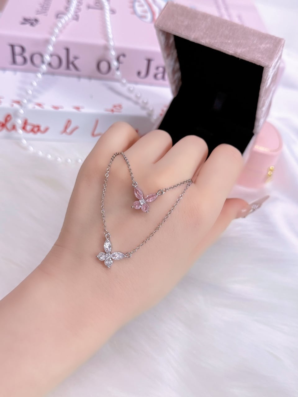 S925シルバーを使用しており、美しい輝きを長く保つことができます。チェーンの長さは40cm、アジャスターが5cmついているため、スタイルに合わせた調整ができるのが魅力です。デザインは蝶をモチーフにしており、可愛らしさとエレガントさを引き立て、カジュアルからフォーマルなシーンまで幅広くご利用いただけます。