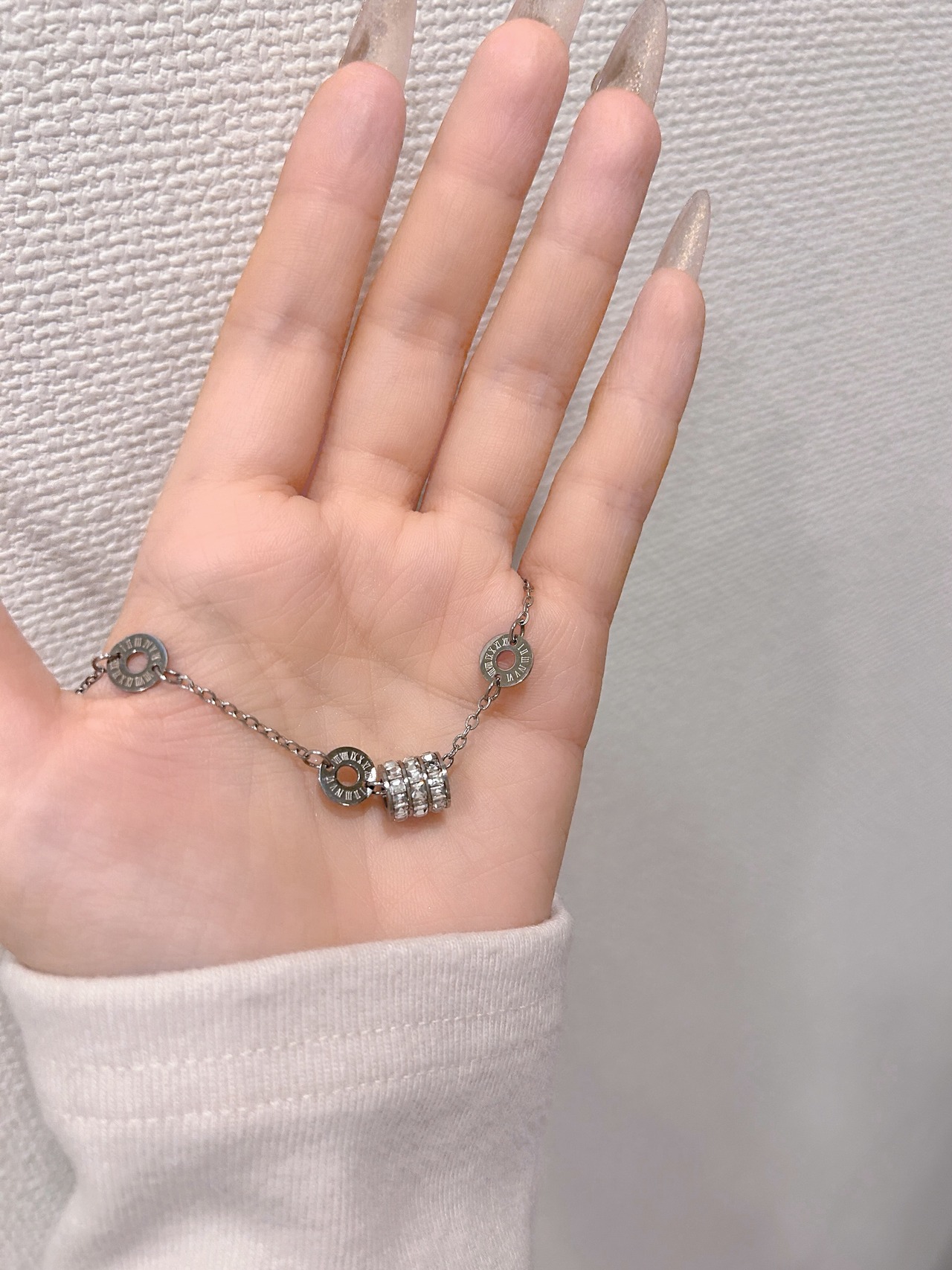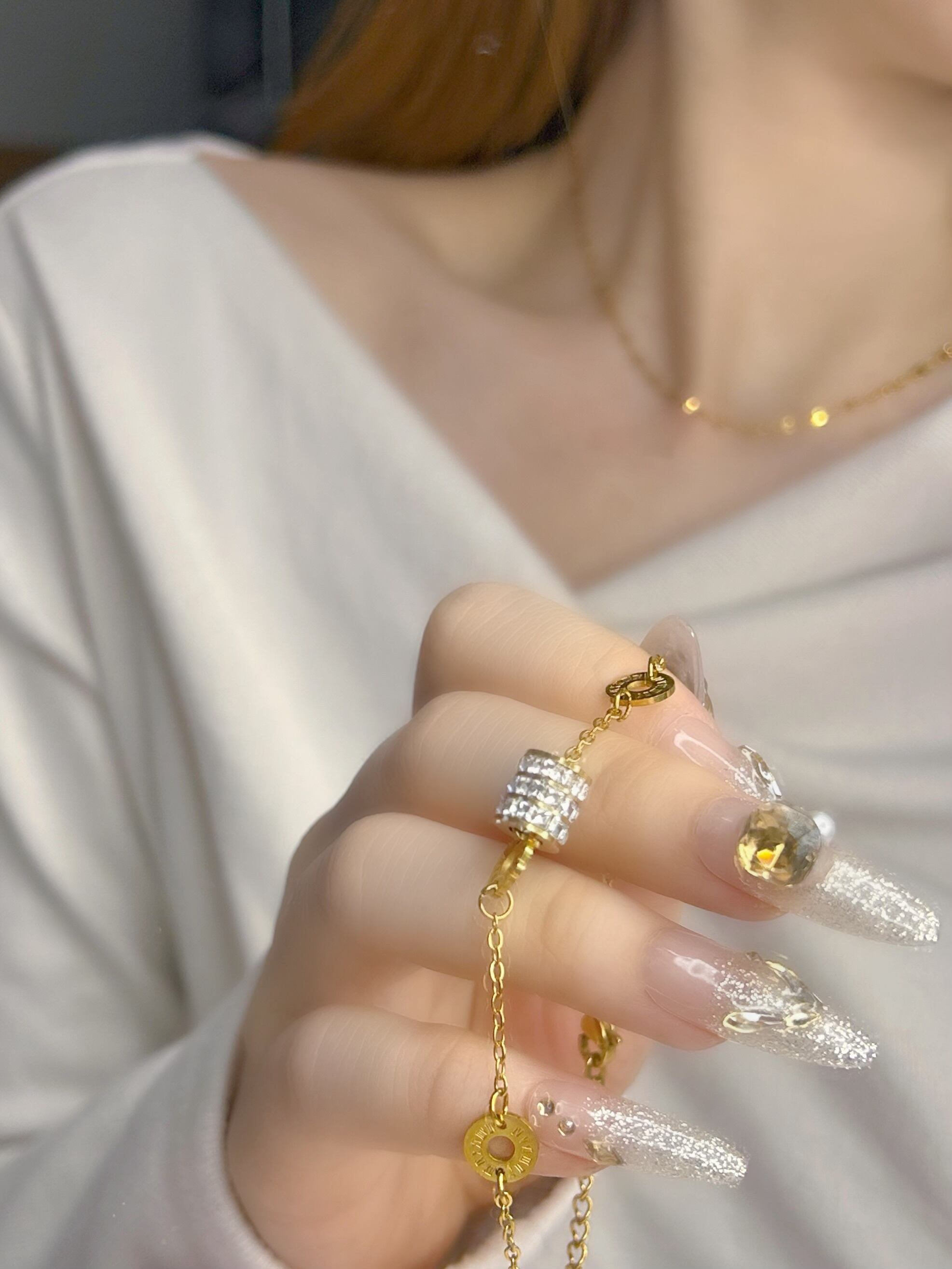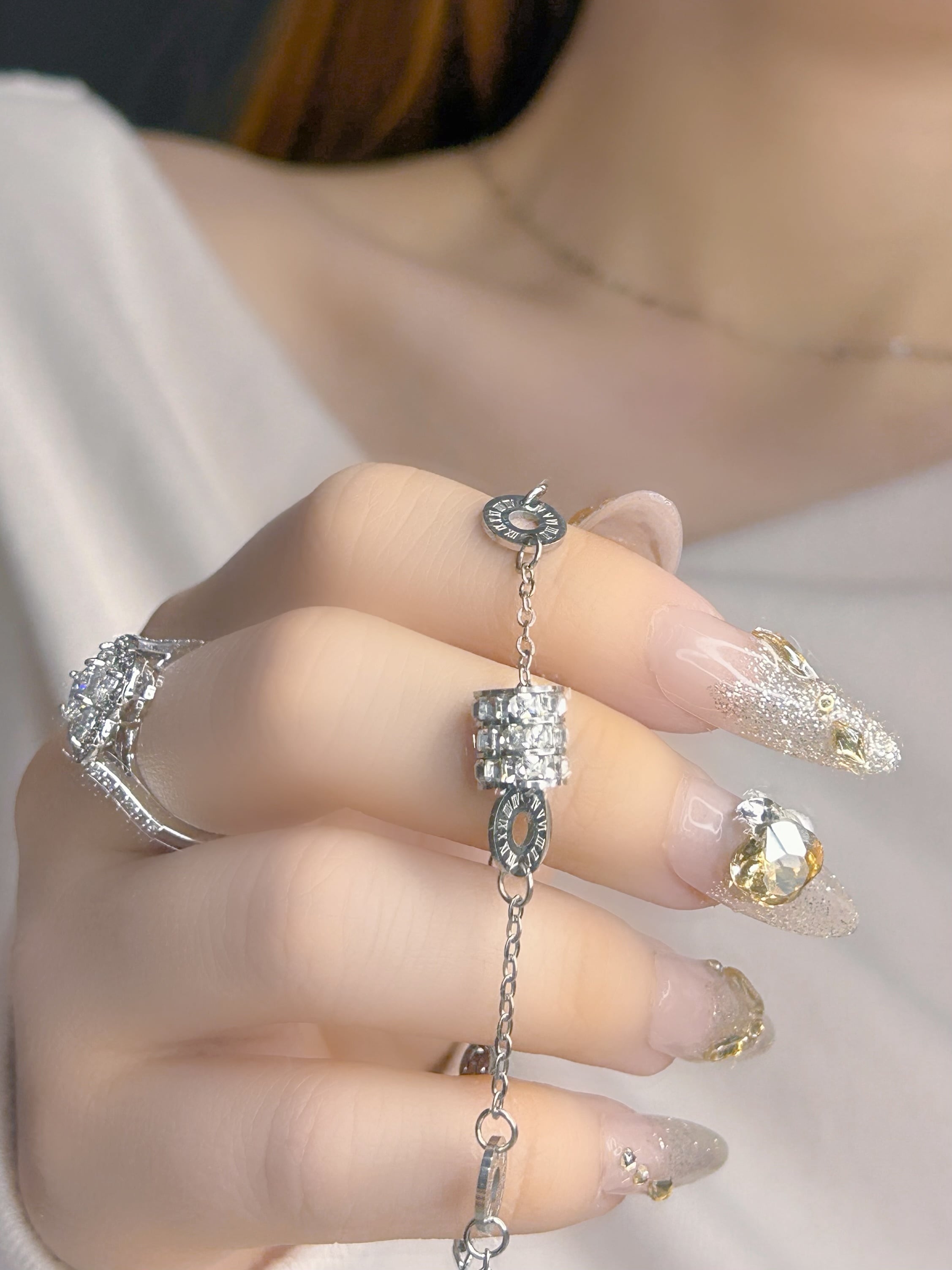 動くたびに繊細な光を放つビジューが手元を華やかに演出。
