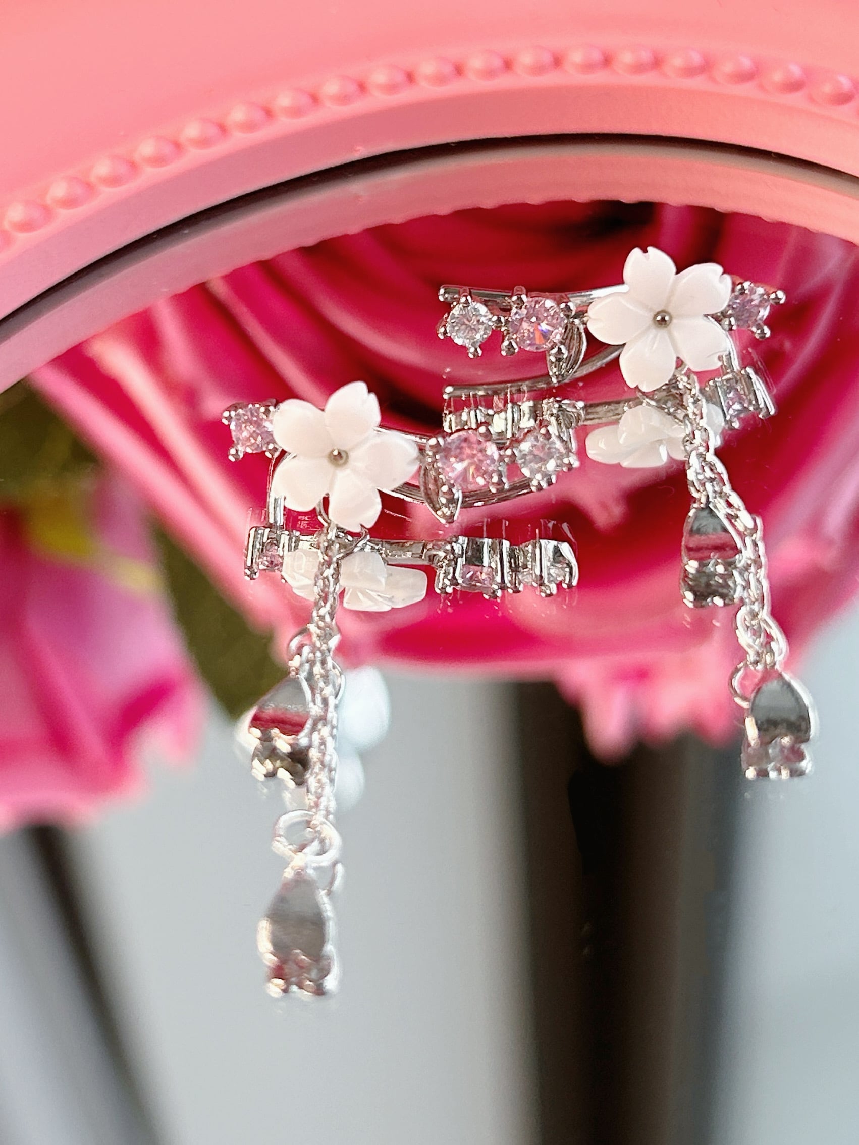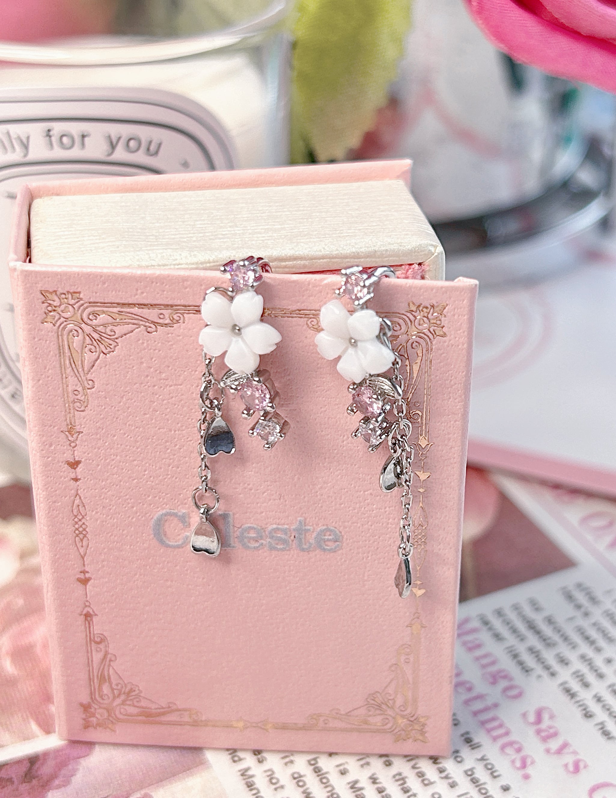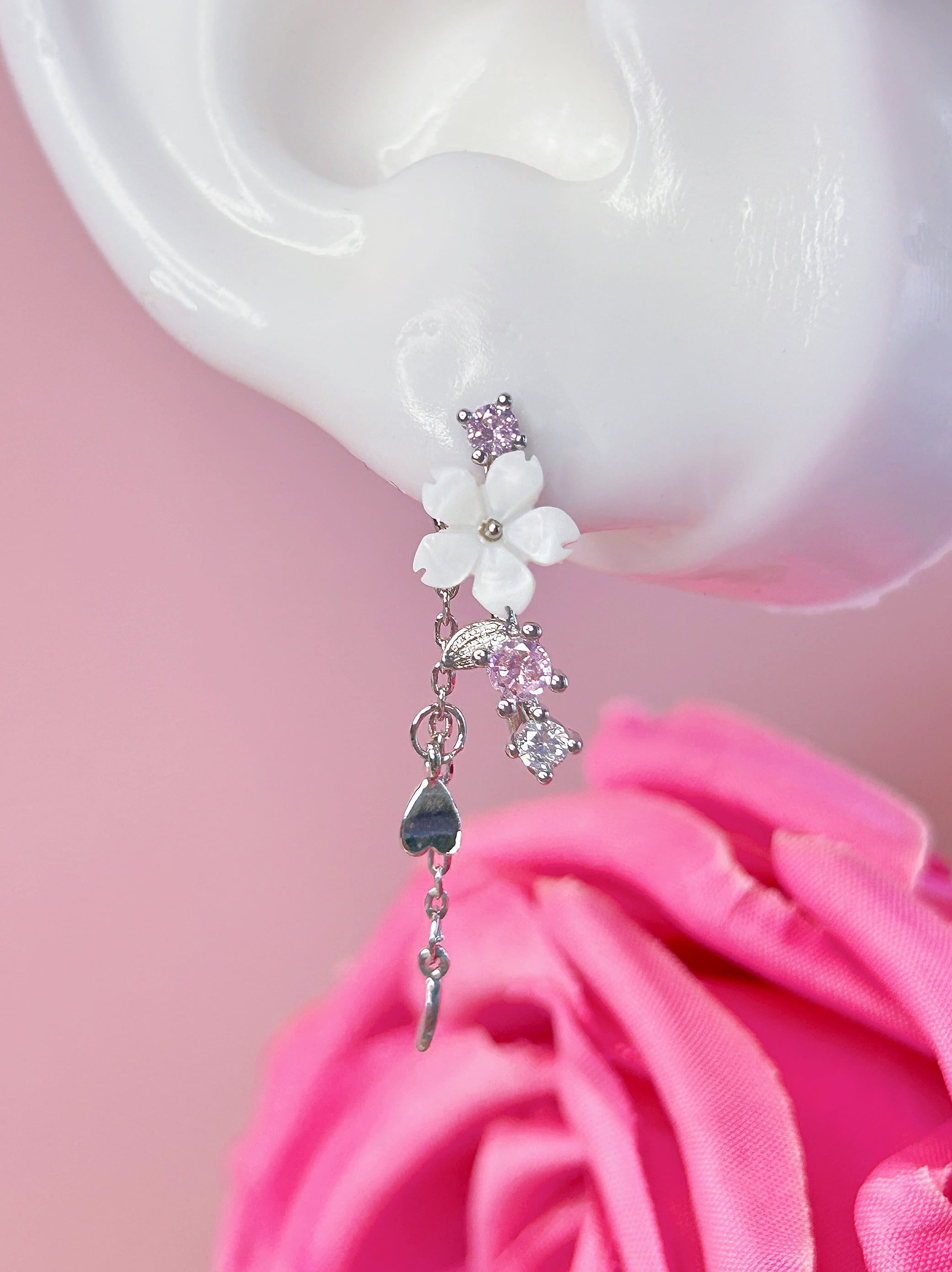 ハートやチェーンのゆらめきが、動くたびにかわいく揺れて、耳元にときめきをプラスしてくれます♡