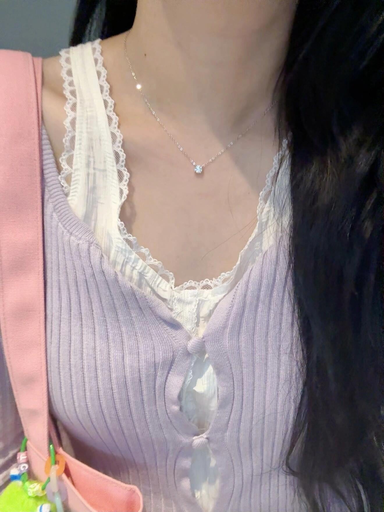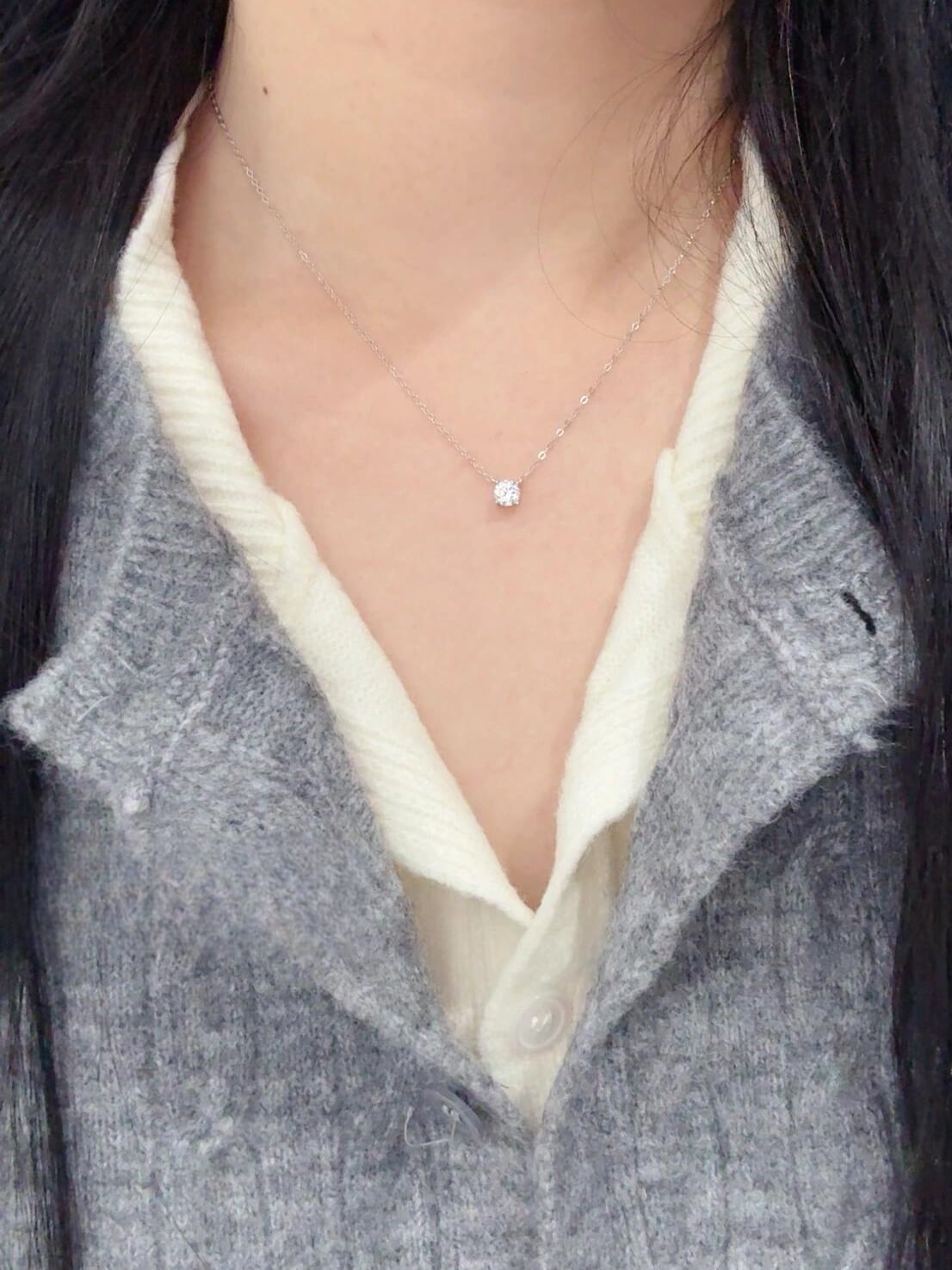 高品質ジルコニア×S925シルバーのシンプルネックレス。