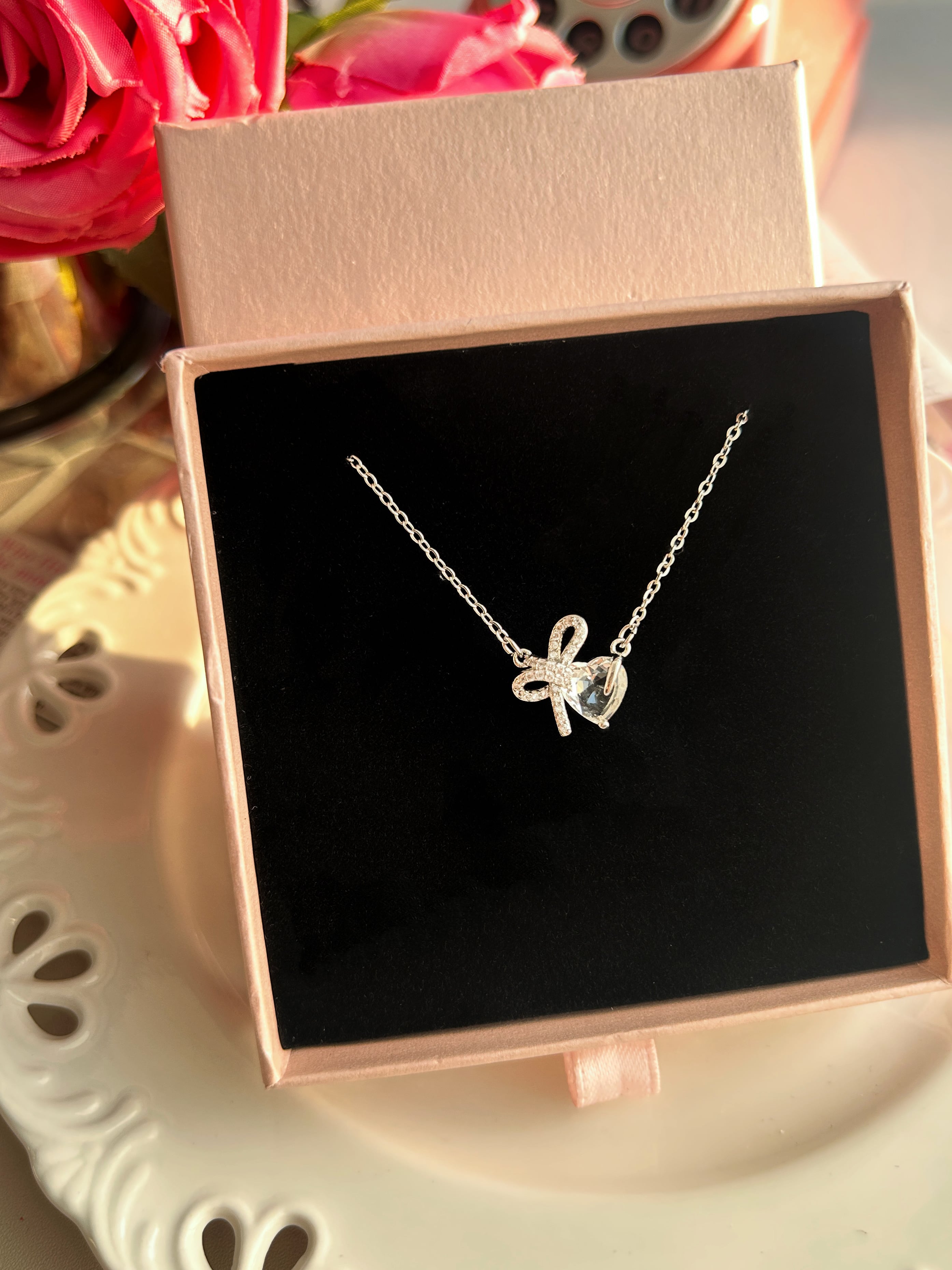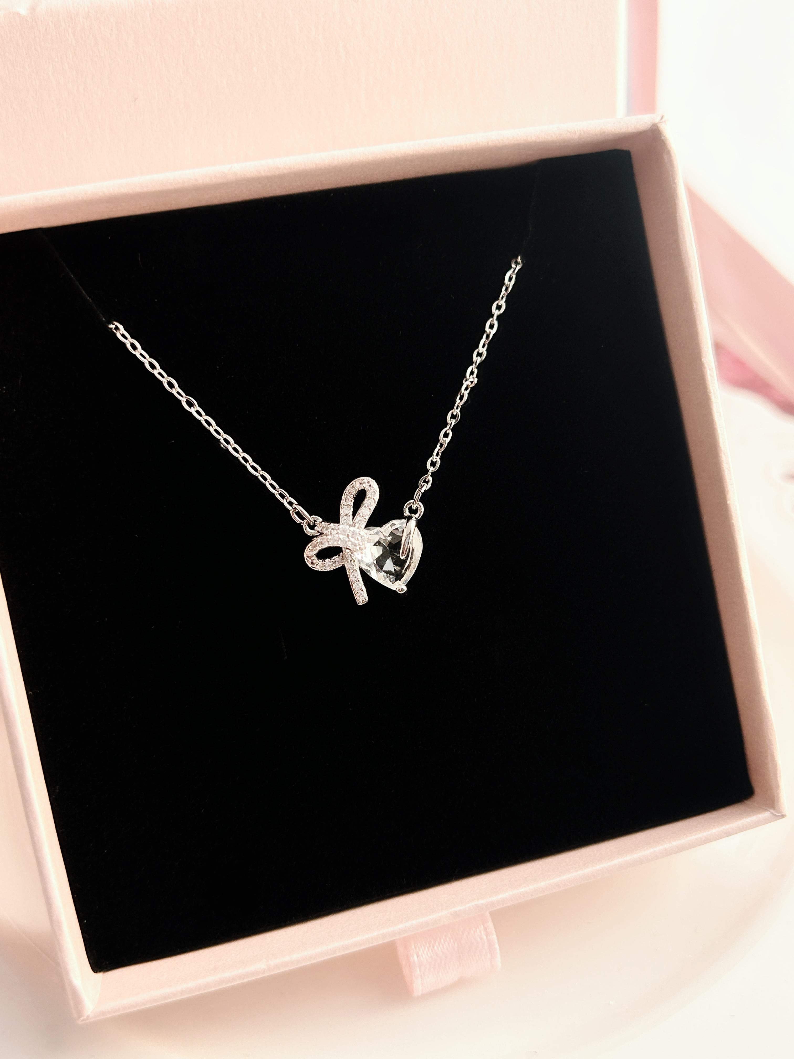 ハートリボンネックレス [25N013]