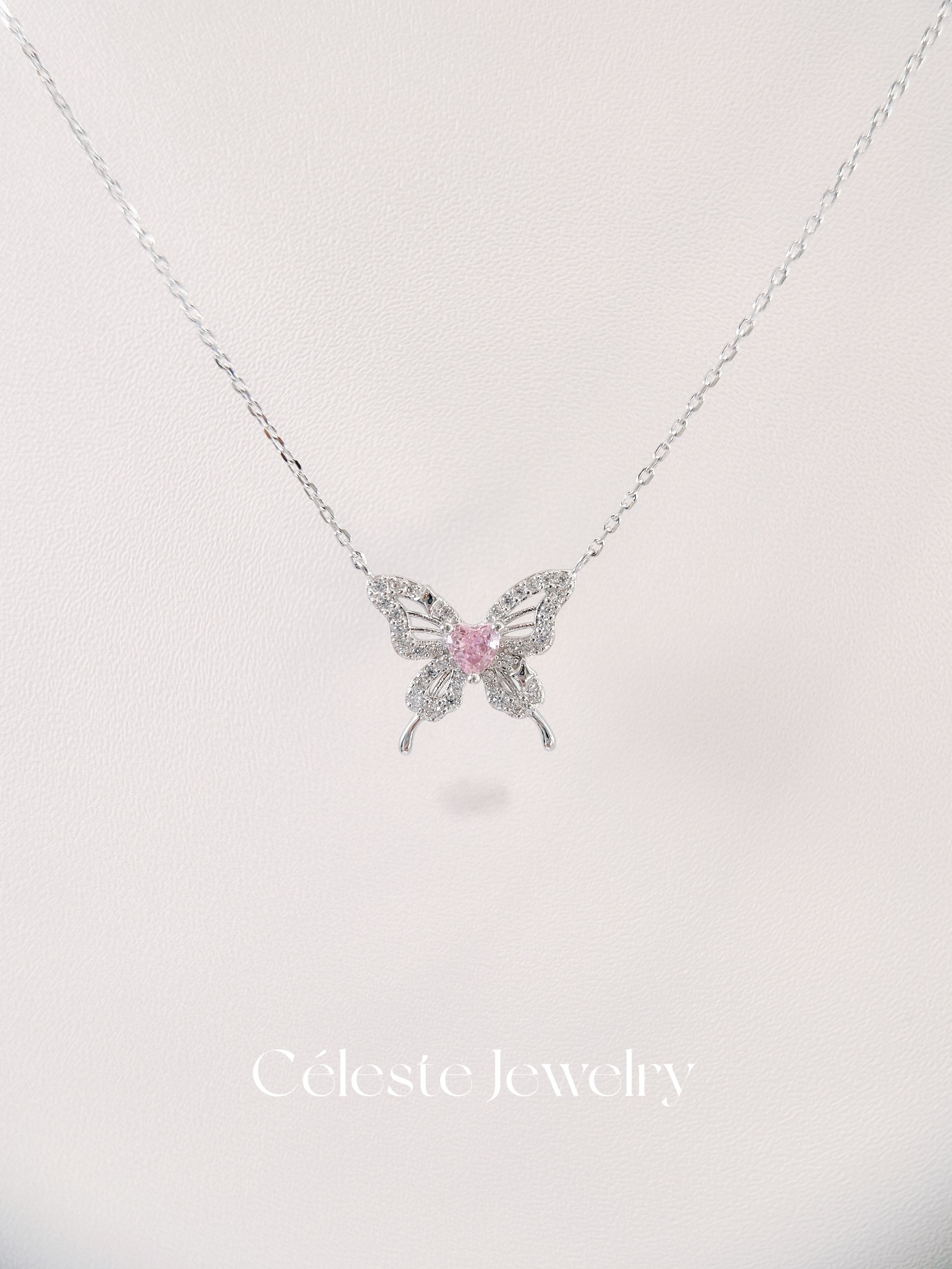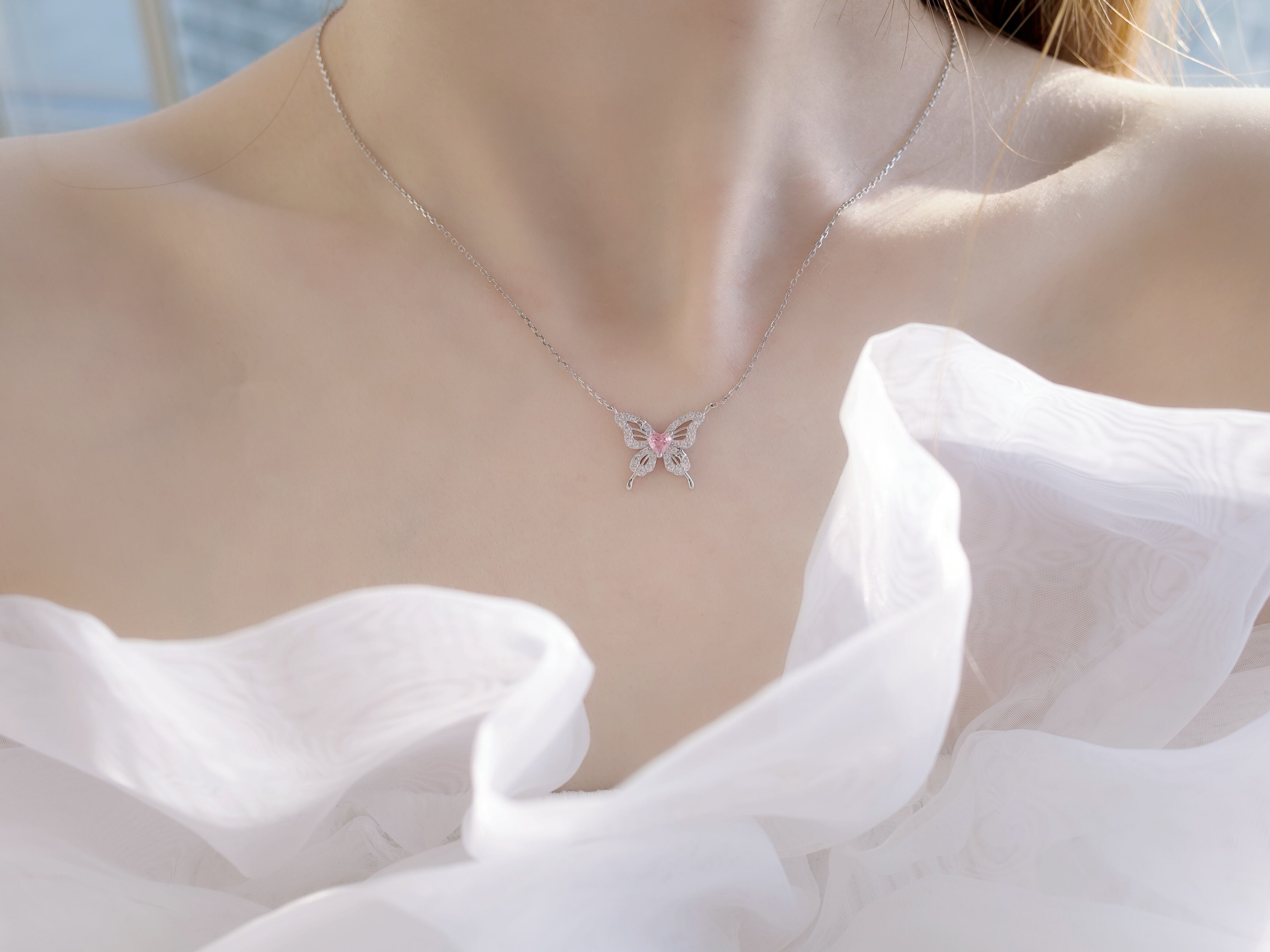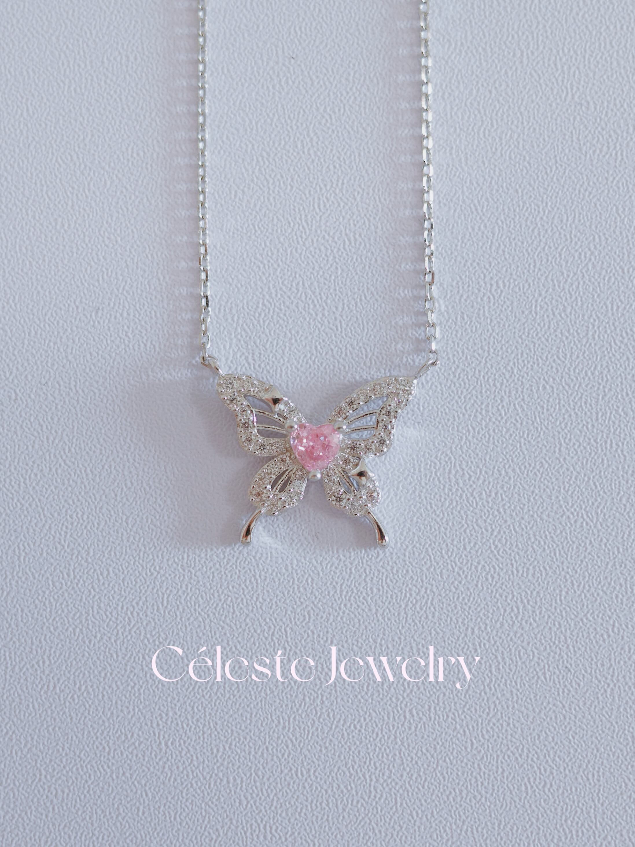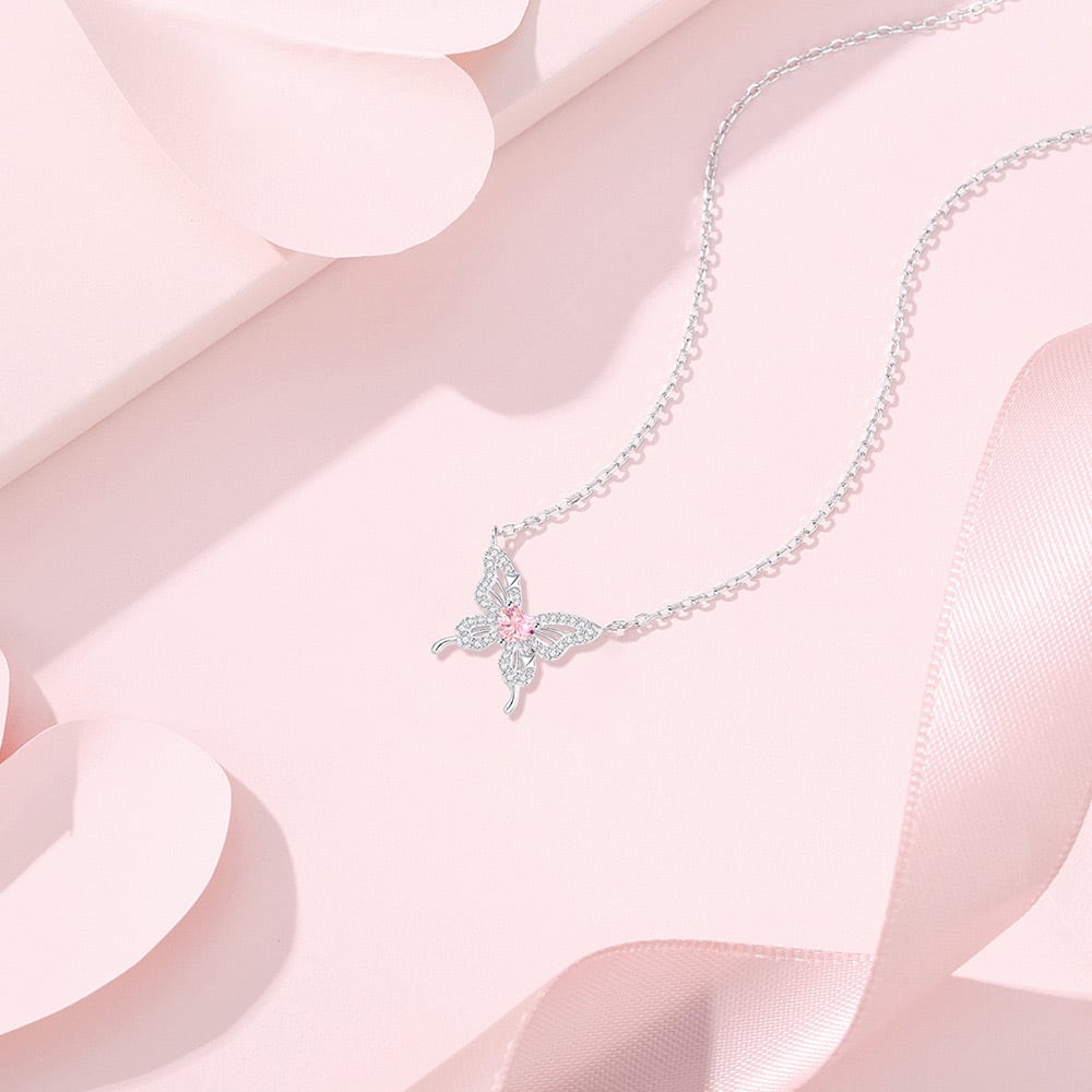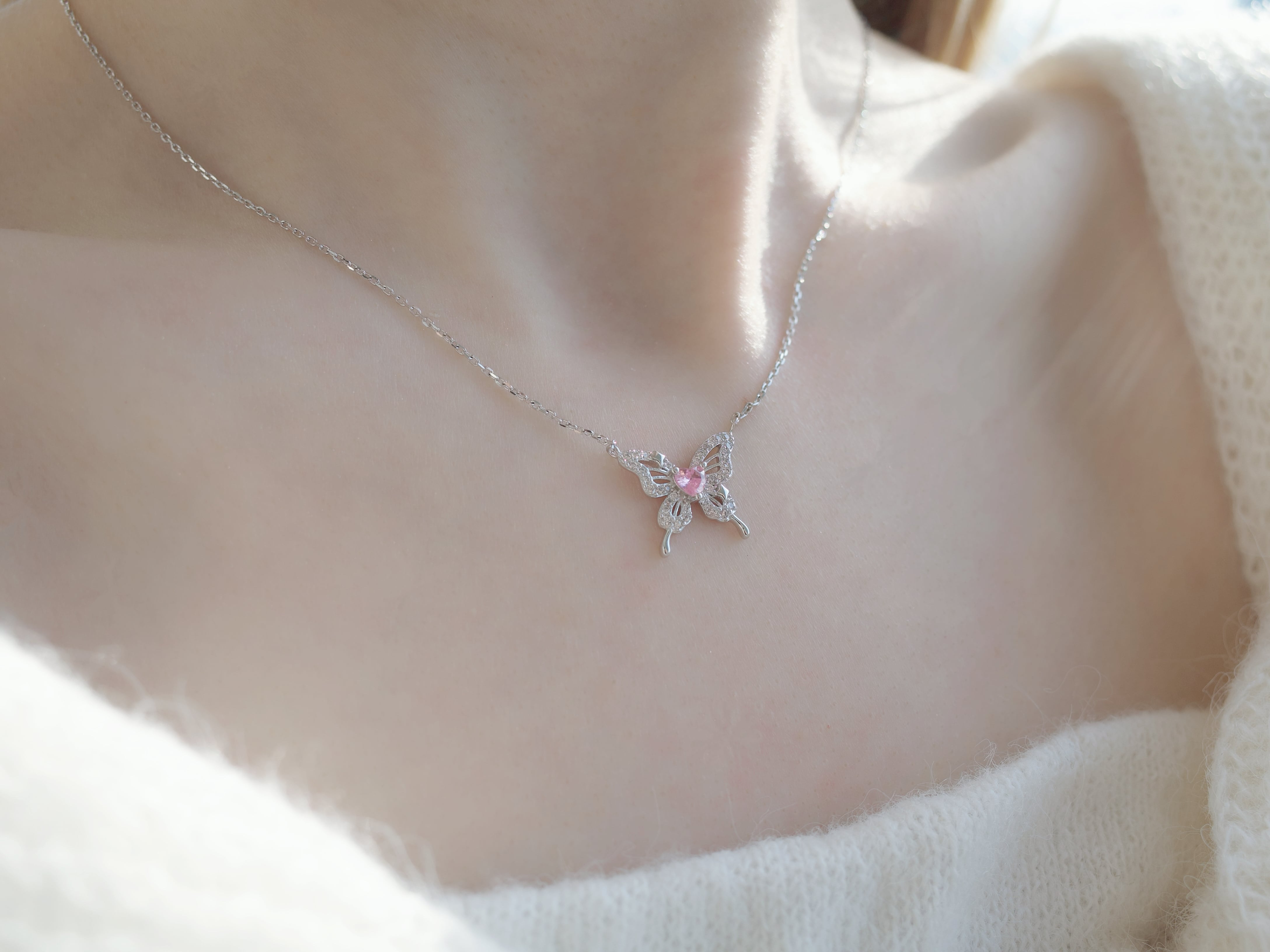 蝶の羽のように美しく舞うデザインが魅力の「ロゼパピヨンネックレス」。S925シルバーの上品な輝きが首元を華やかに引き立て、あらゆるスタイルに合わせやすい一品です。