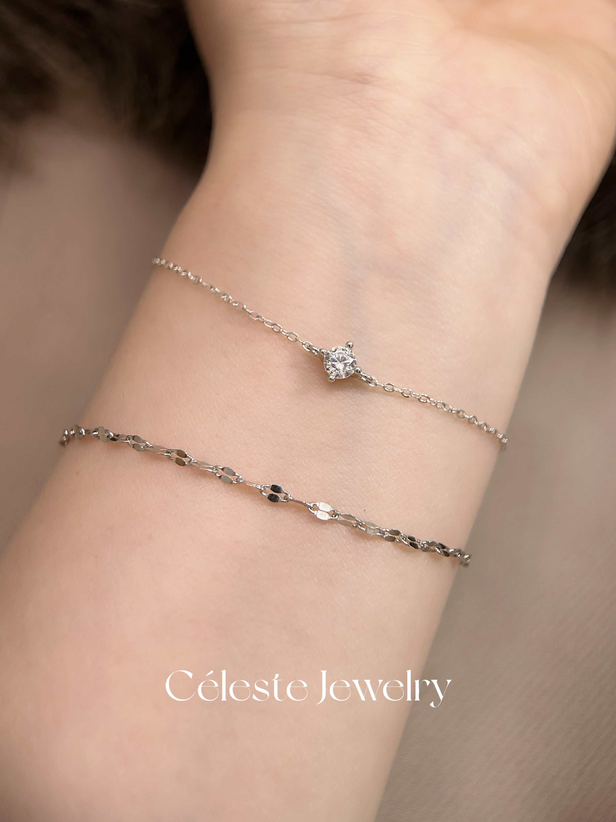 一粒の高級ジルコニアが光を反射してまるで宝石のように輝く「一粒ジルコニアブレスレット」。S925シルバーの繊細なデザインが手元を美しく引き立て、あらゆるファッションに合わせやすい一品です。