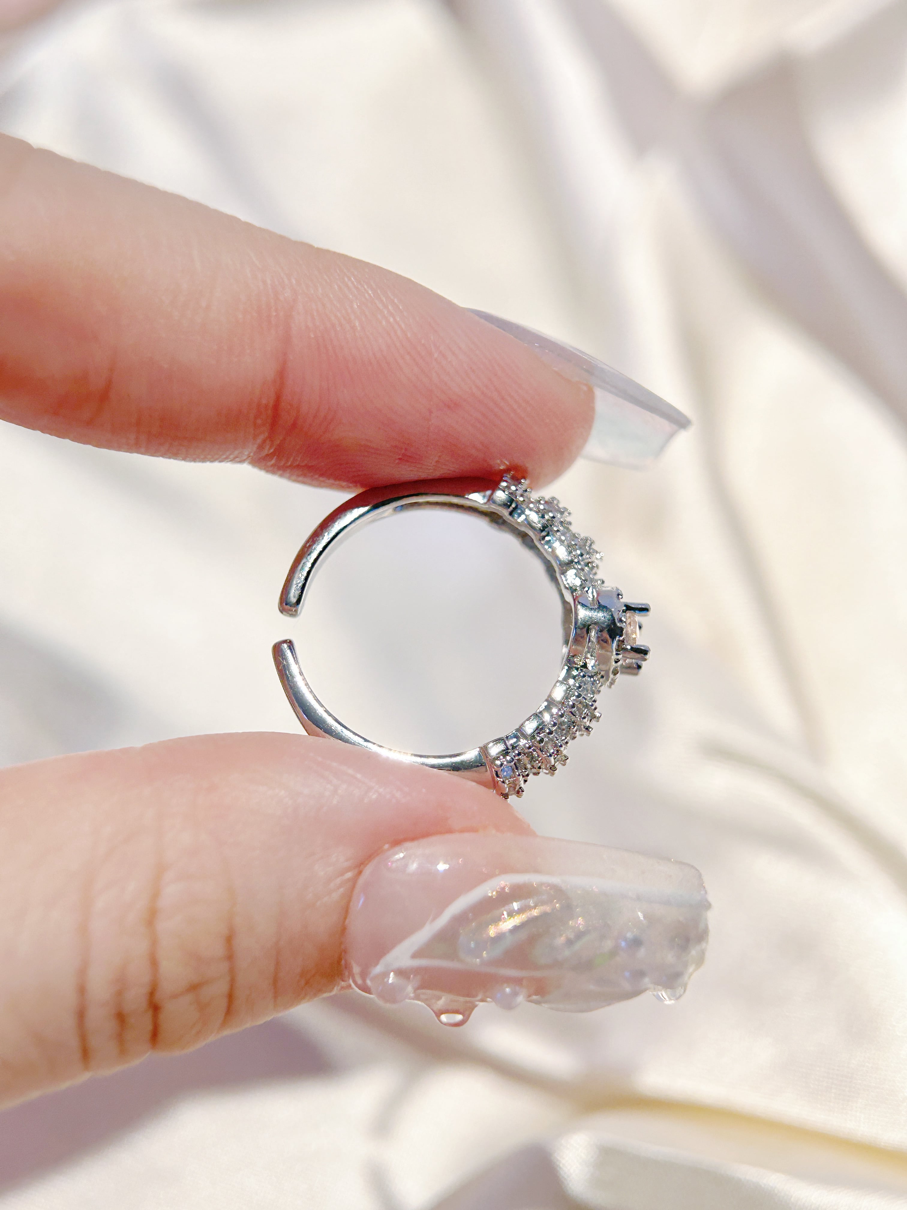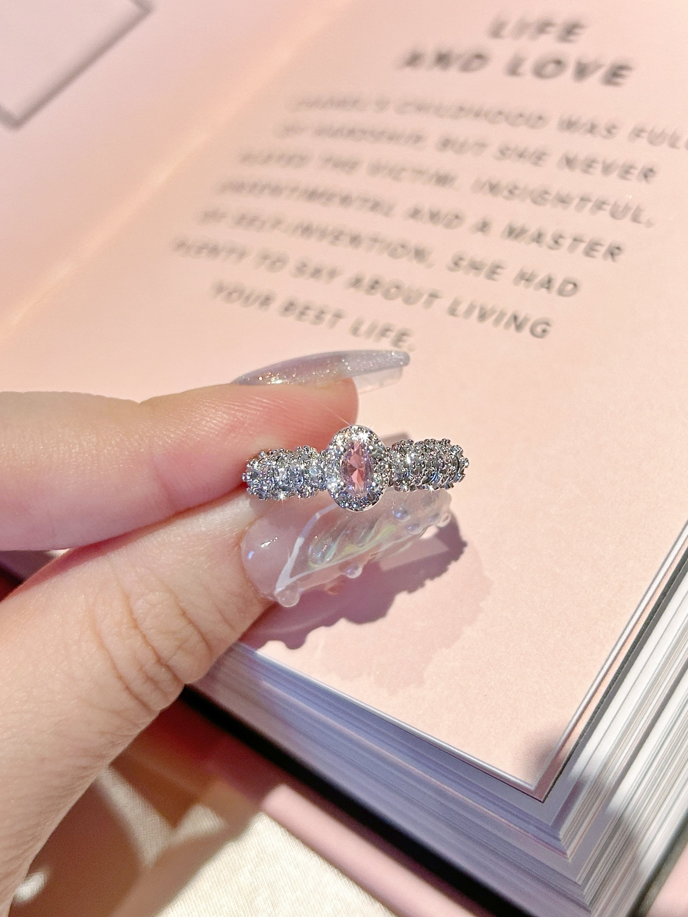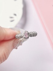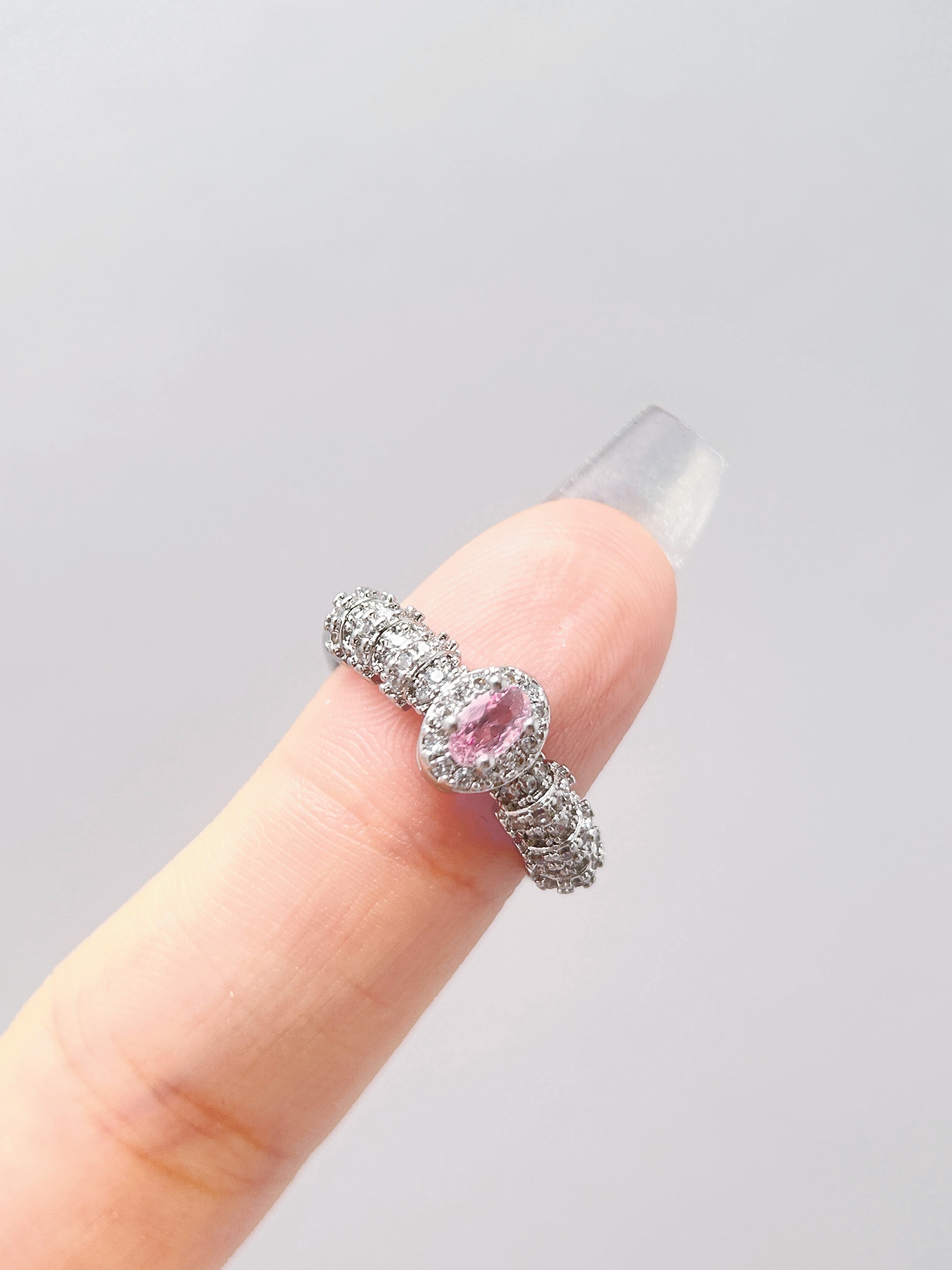 センターには淡いピンクのジルコニアをあしらい、手元にそっと華やかさを添えます。