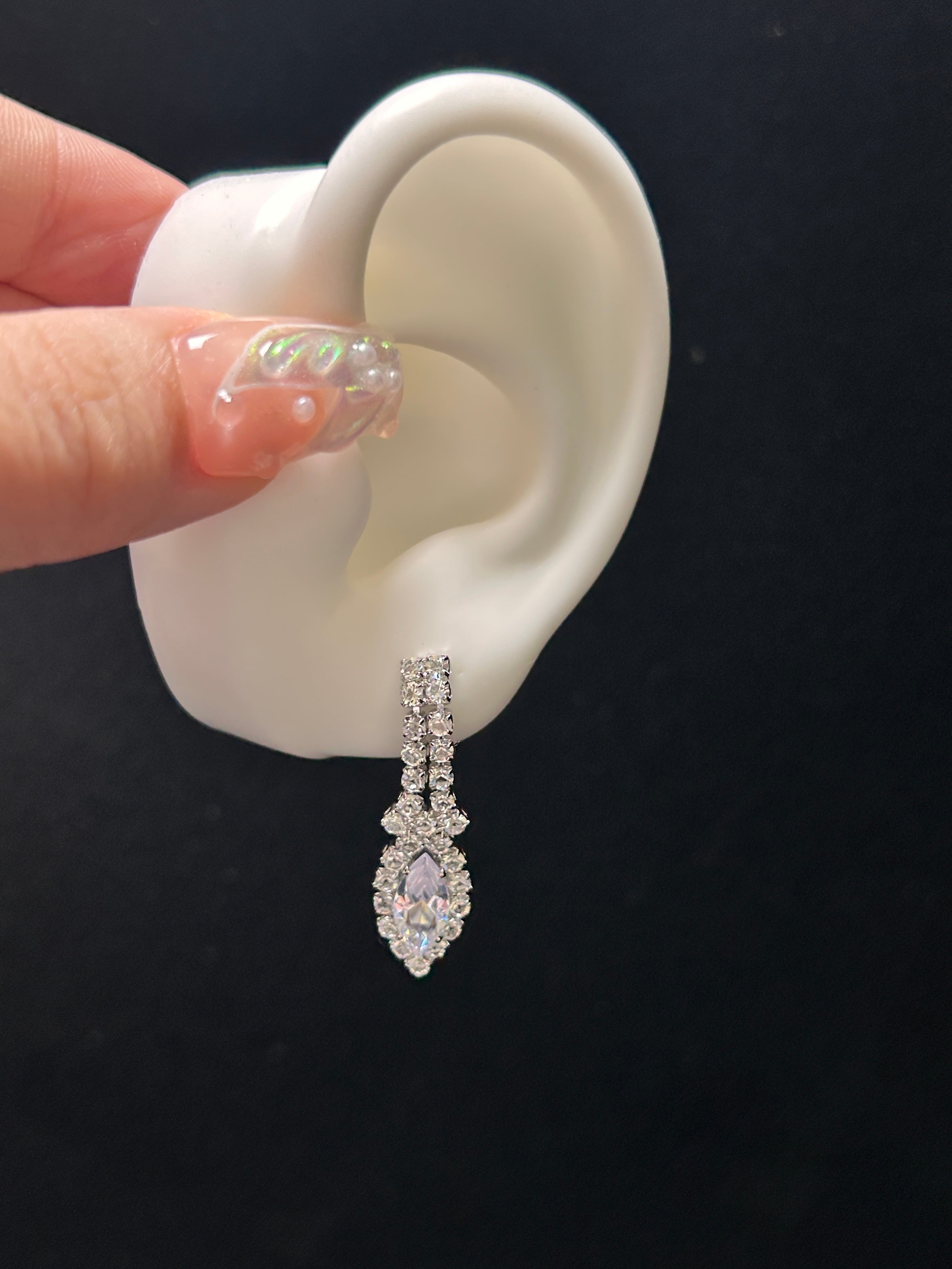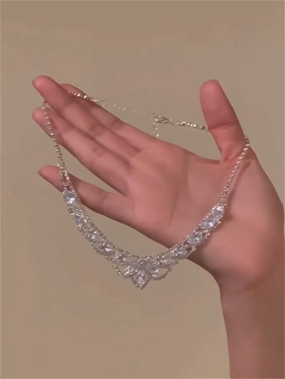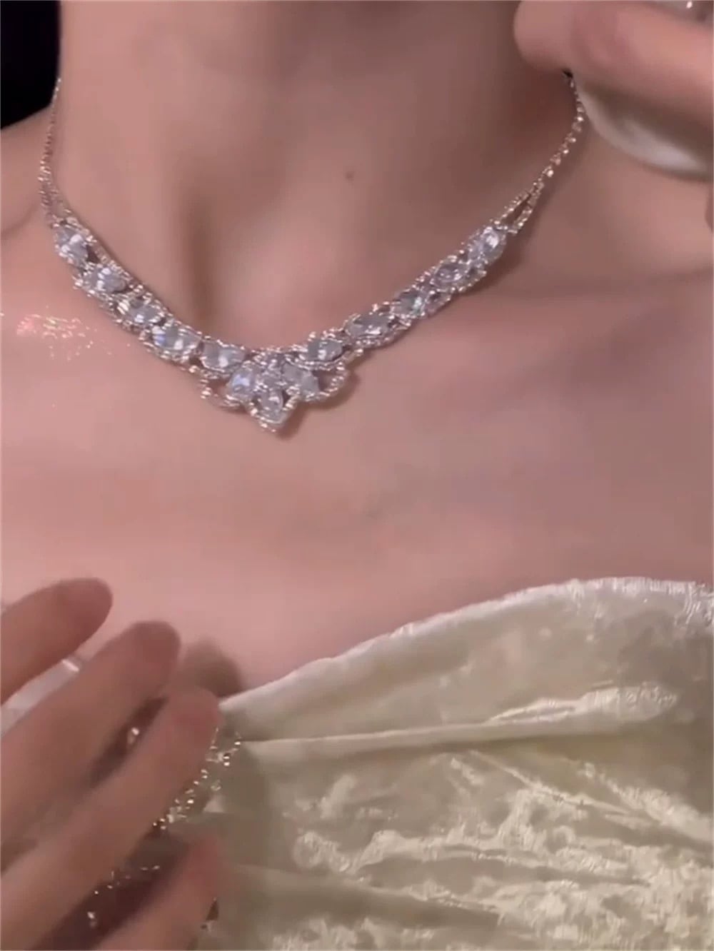 繊細なビジューが首元と耳元を華やかに彩り、特別な日をよりドラマチックに演出します。