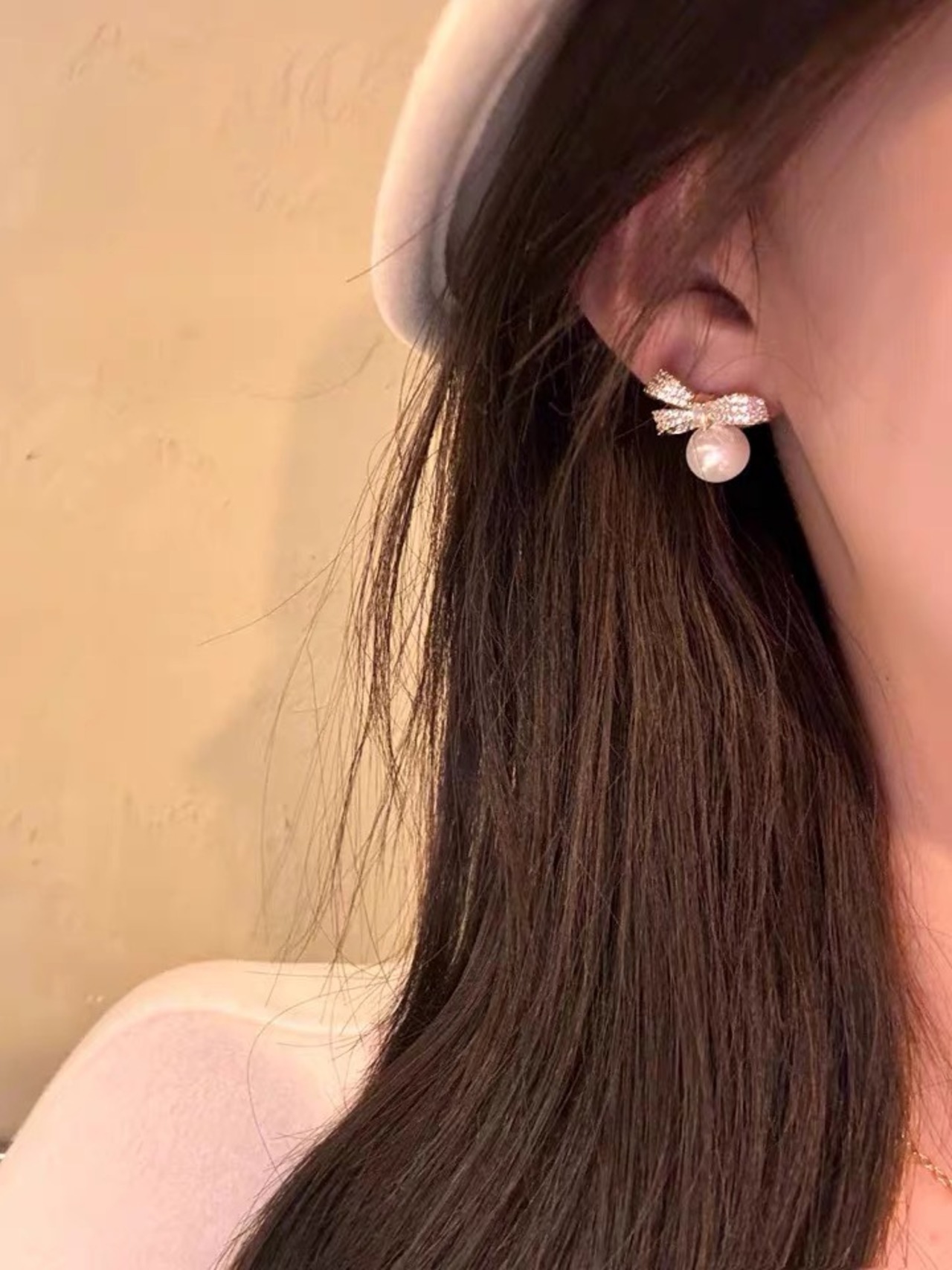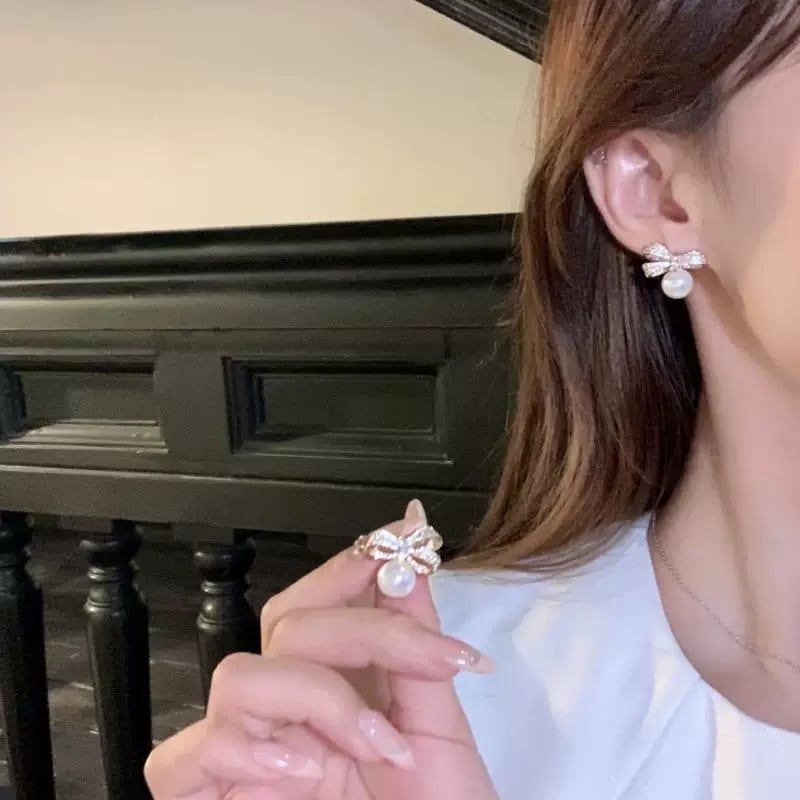 着けるだけでふんわりと優しい印象に仕上がる、上品なリボン×パールのピアス。