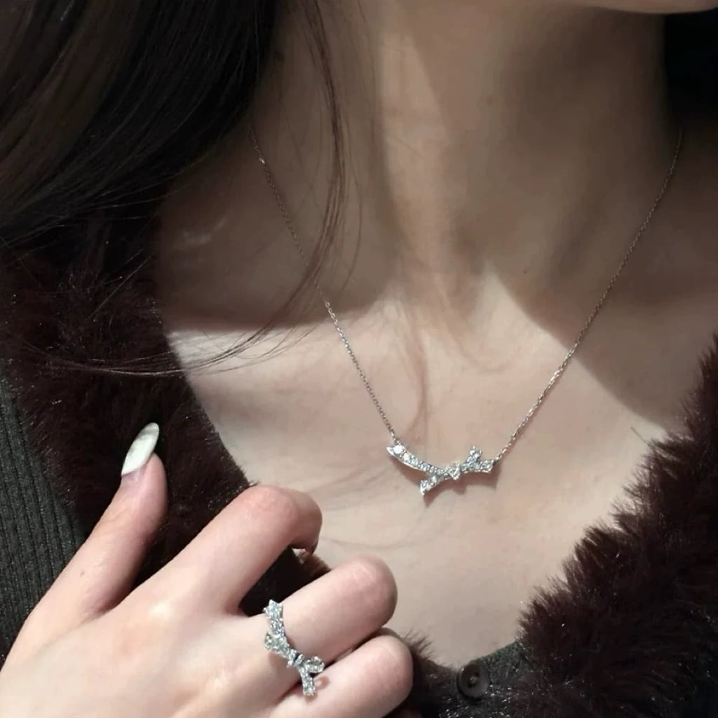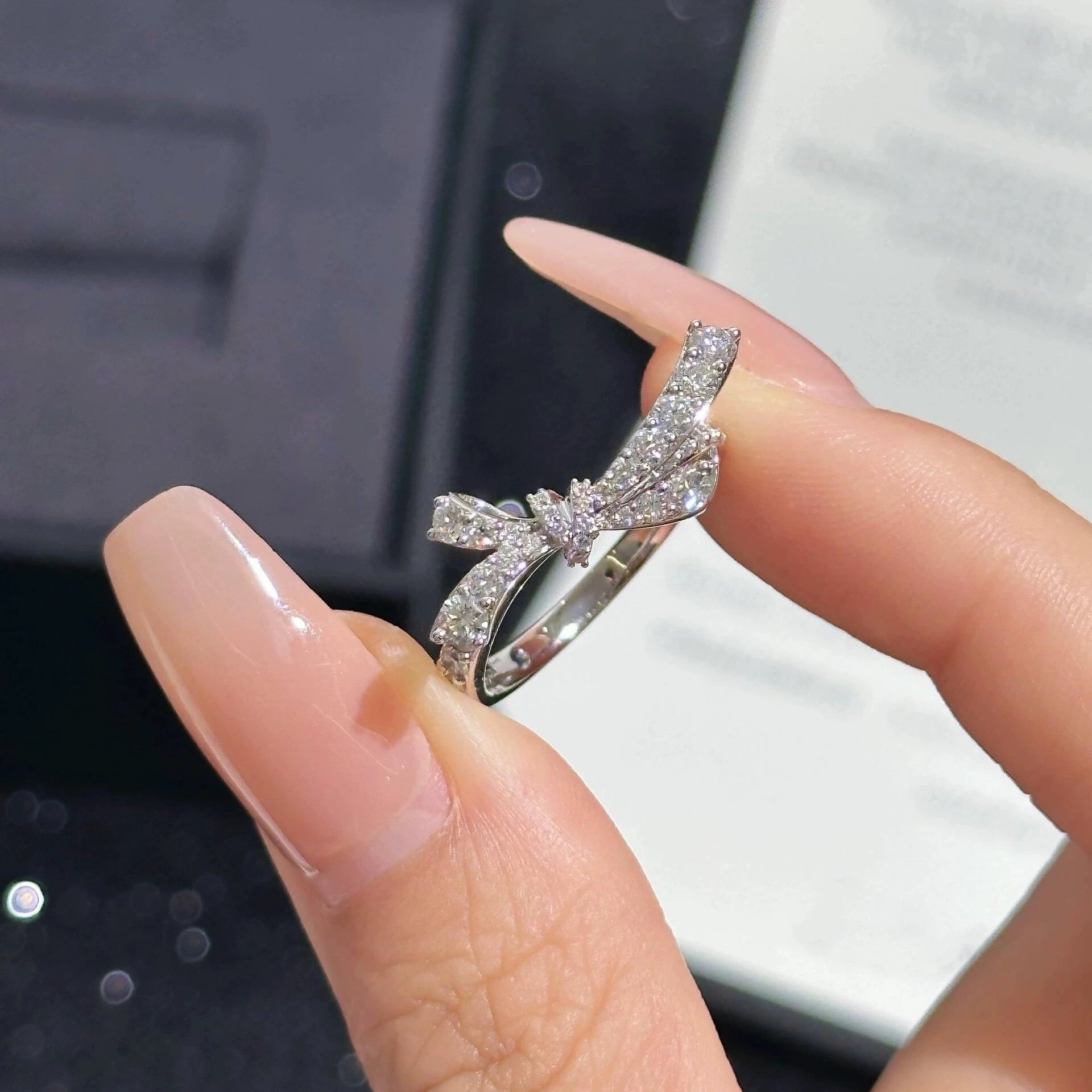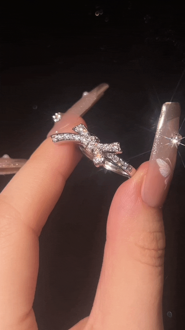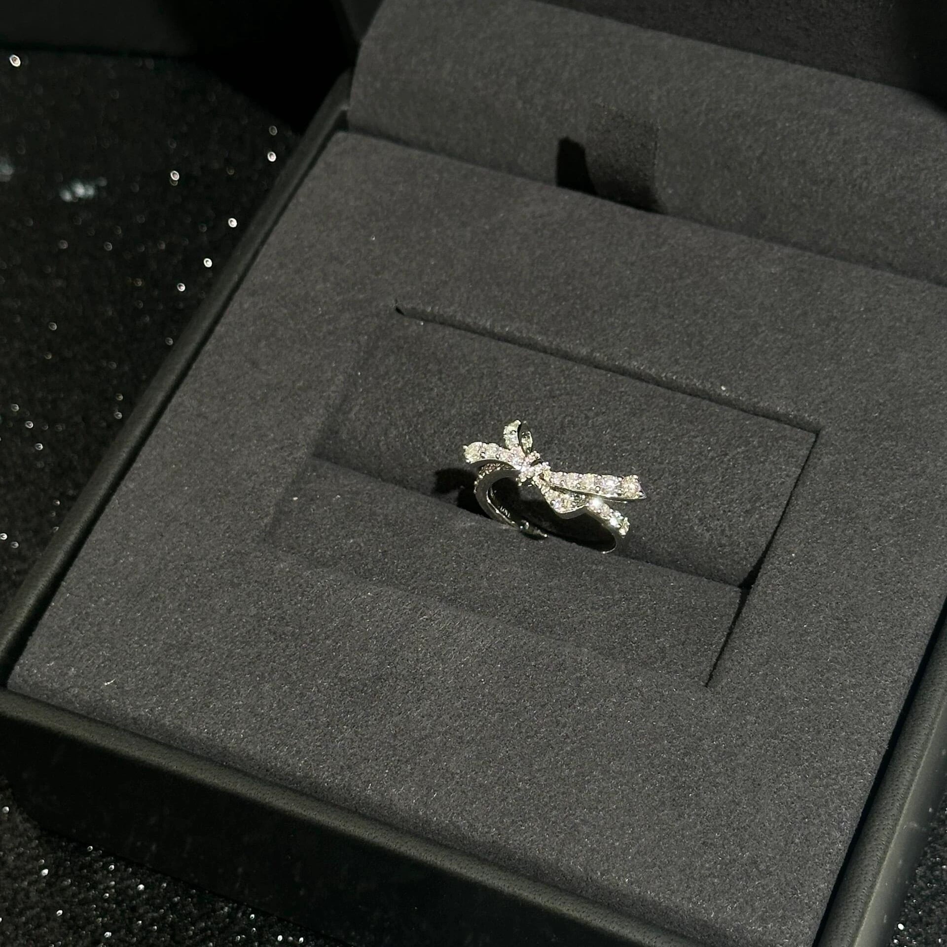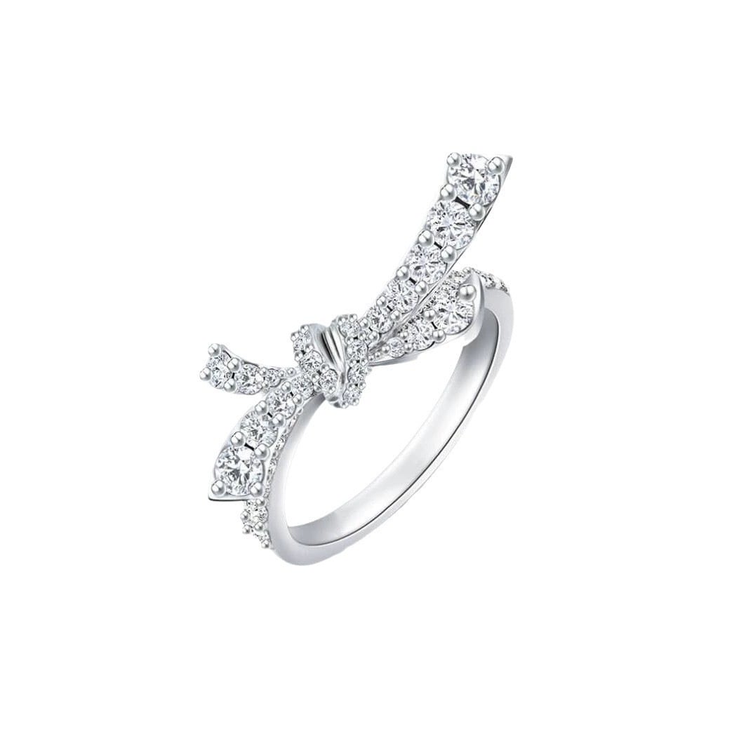 繊細なリボンモチーフに、上品なジルコニアが敷き詰められたデザインリング。