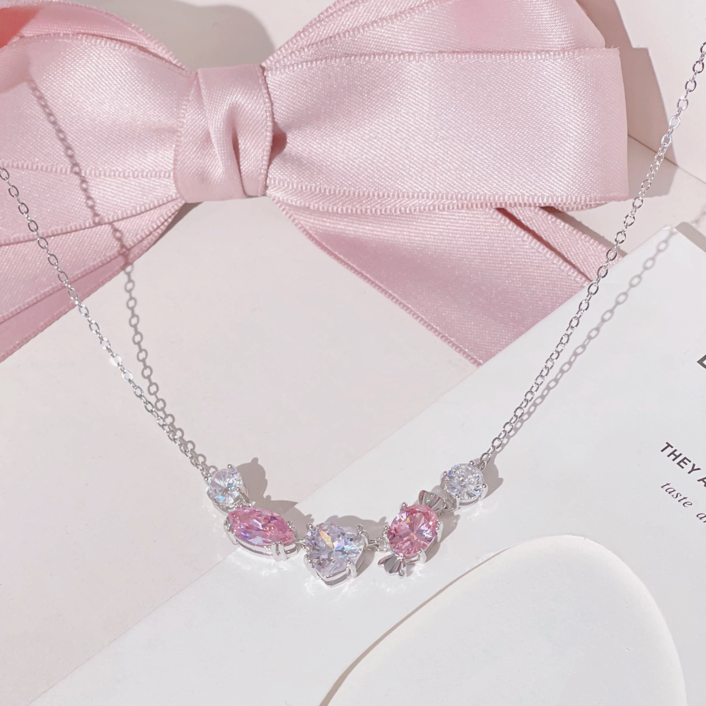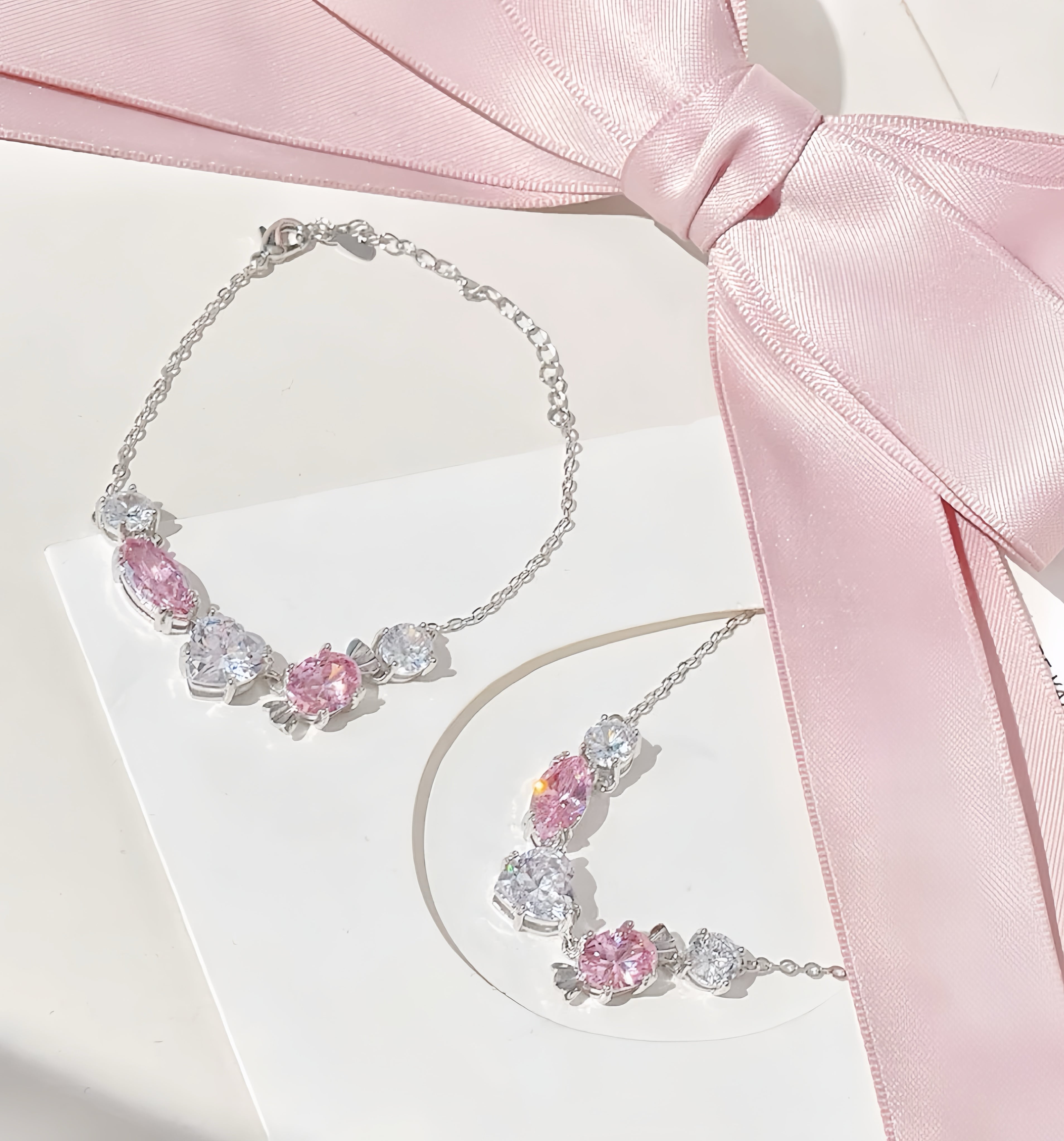 淡いピンクと透明感あふれるジルコニアが、まるでキャンディのようにきらめくデザイン。