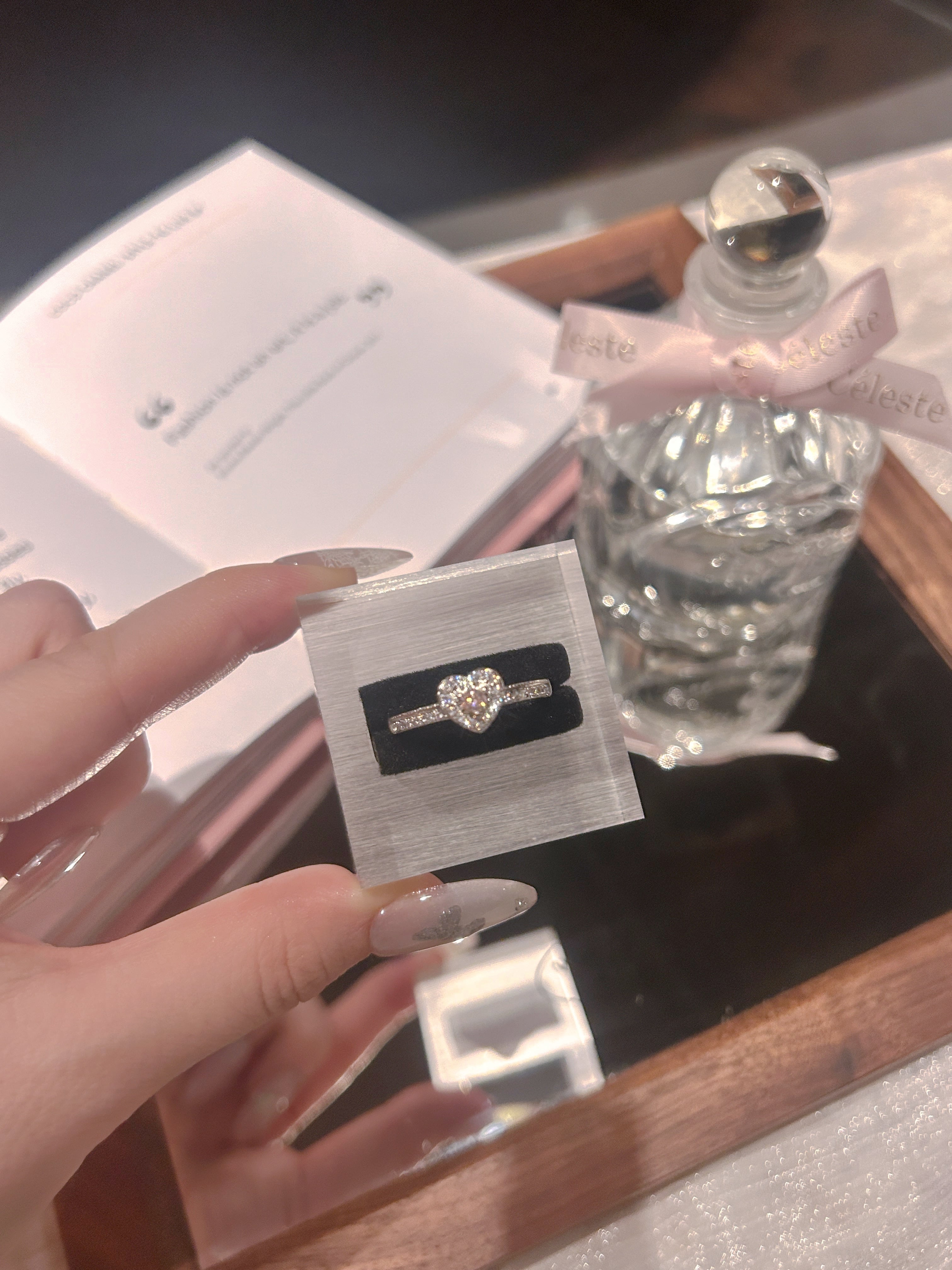 繊細に敷き詰められた小粒のジルコニアが、指先の動きに合わせて美しく輝きます。