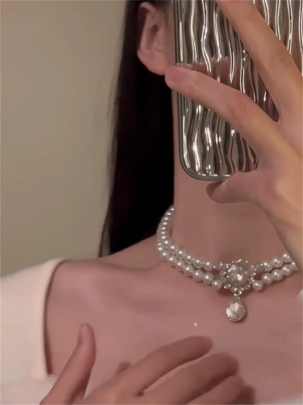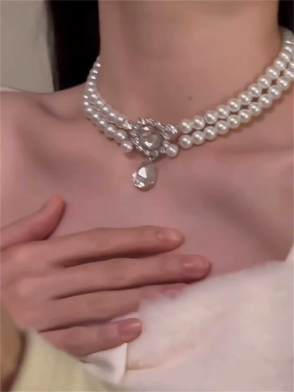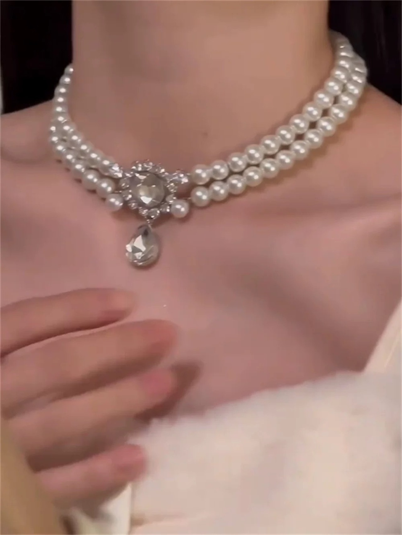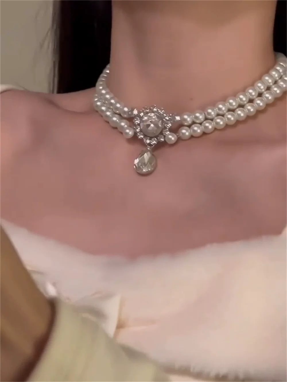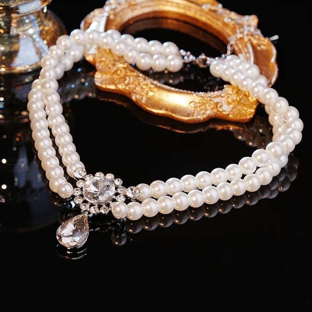 首元にしっかりとフィットしながらも存在感があり、フォーマルな装いに上品な輝きを添えてくれます。