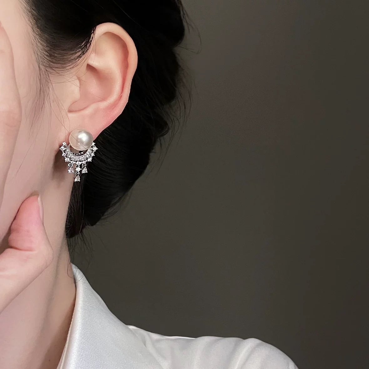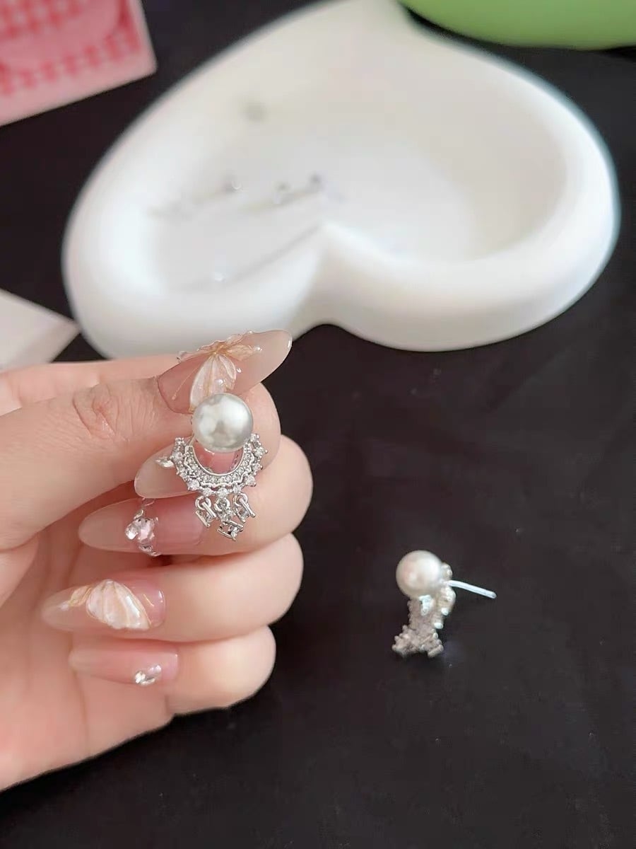 研磨によって極上の艶と透明感を引き出した、白く柔らかな輝きのパールを主役にしたピアス。