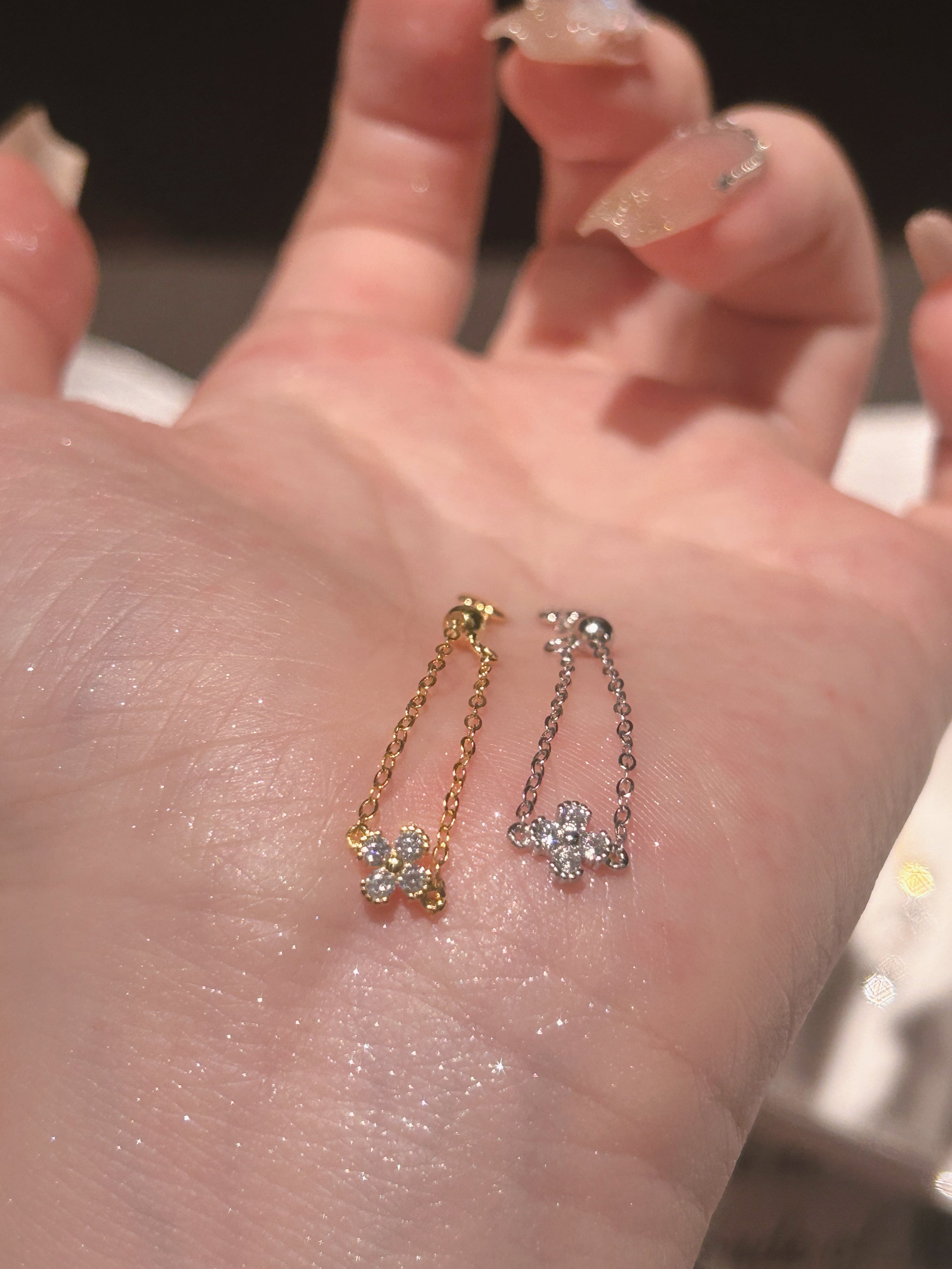 繊細なチェーンの先に、小さな花モチーフが揺れる可憐なデザイン。