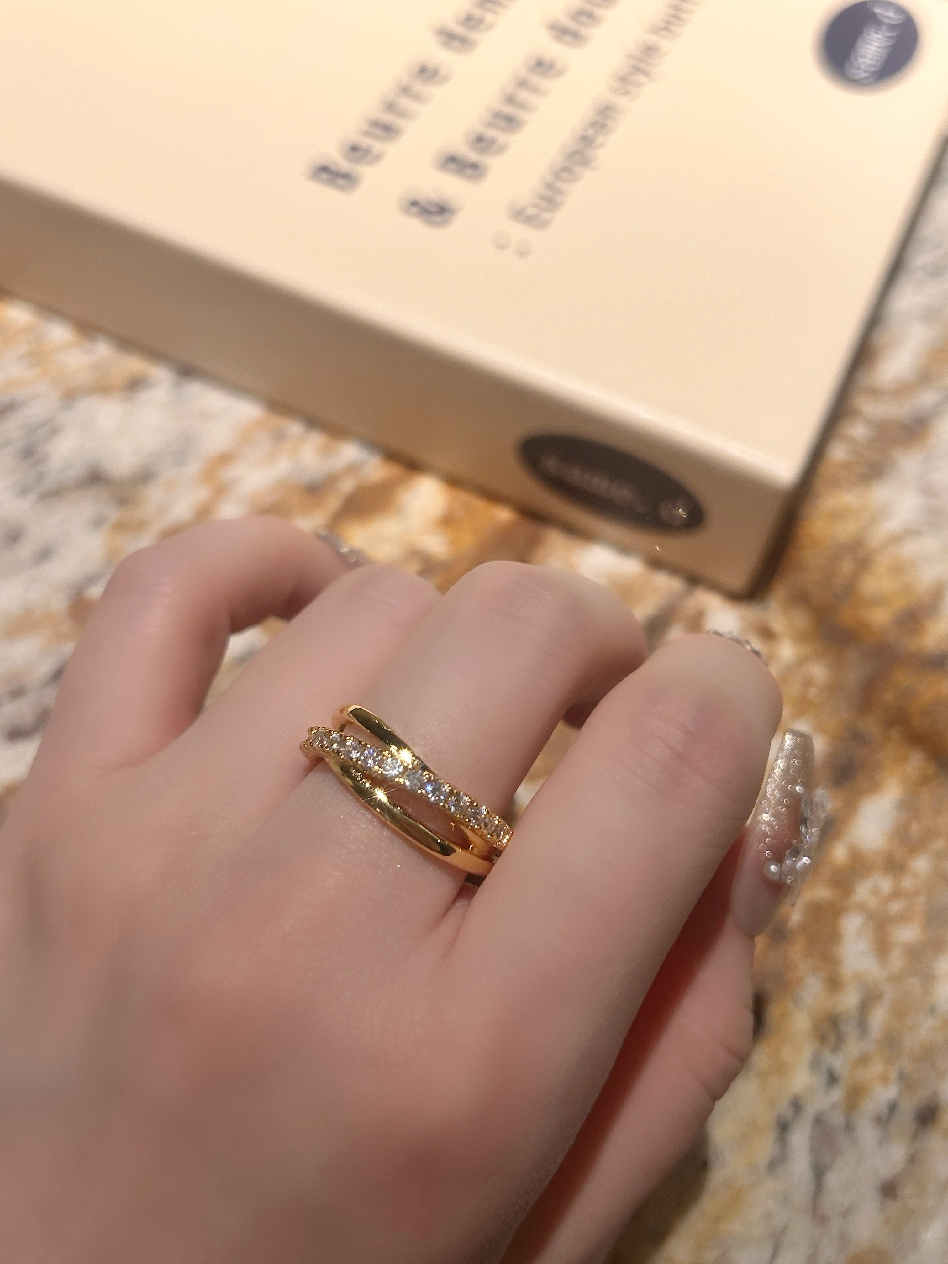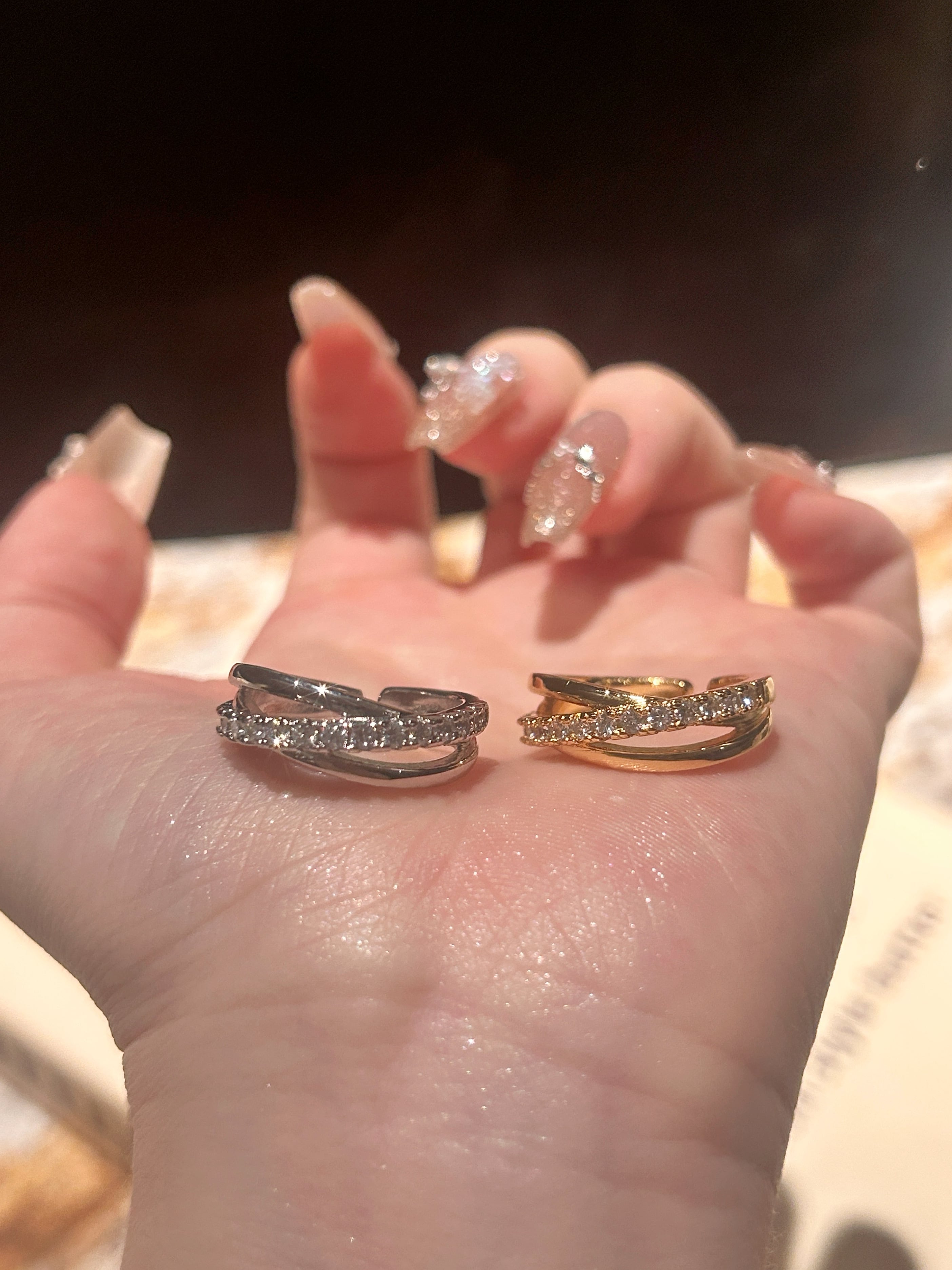 美しい輝きが手元を飾るTwinkle Cross Ring。サージカルステンレス製で、耐久性がありながらも軽やかな着け心地が特徴です。フリーサイズなので、誰でも気軽にお楽しみいただけます。