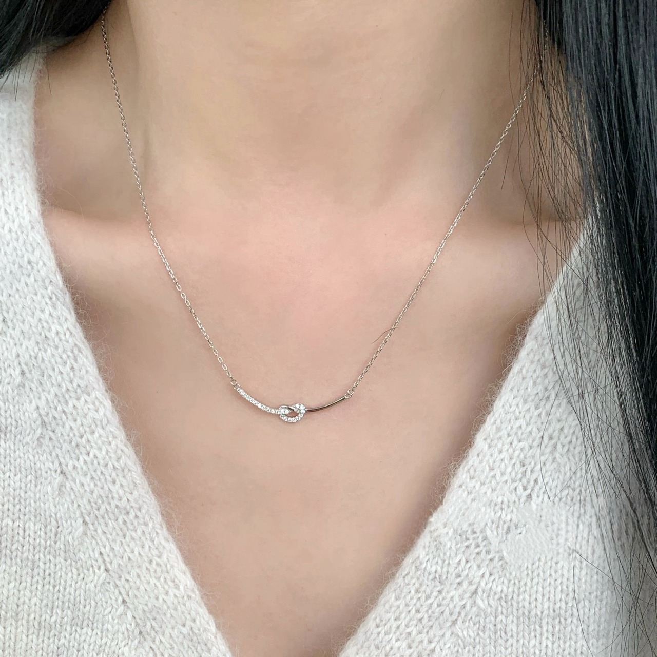 美しい輝きが首元を彩るLustre Loop Necklace。S925シルバーを使用しており、高級感あふれるデザインが魅力です。長さは40cmに加え、5cmのアジャスト機能が備わっており、さまざまなスタイルに合わせてお楽しみいただけます。