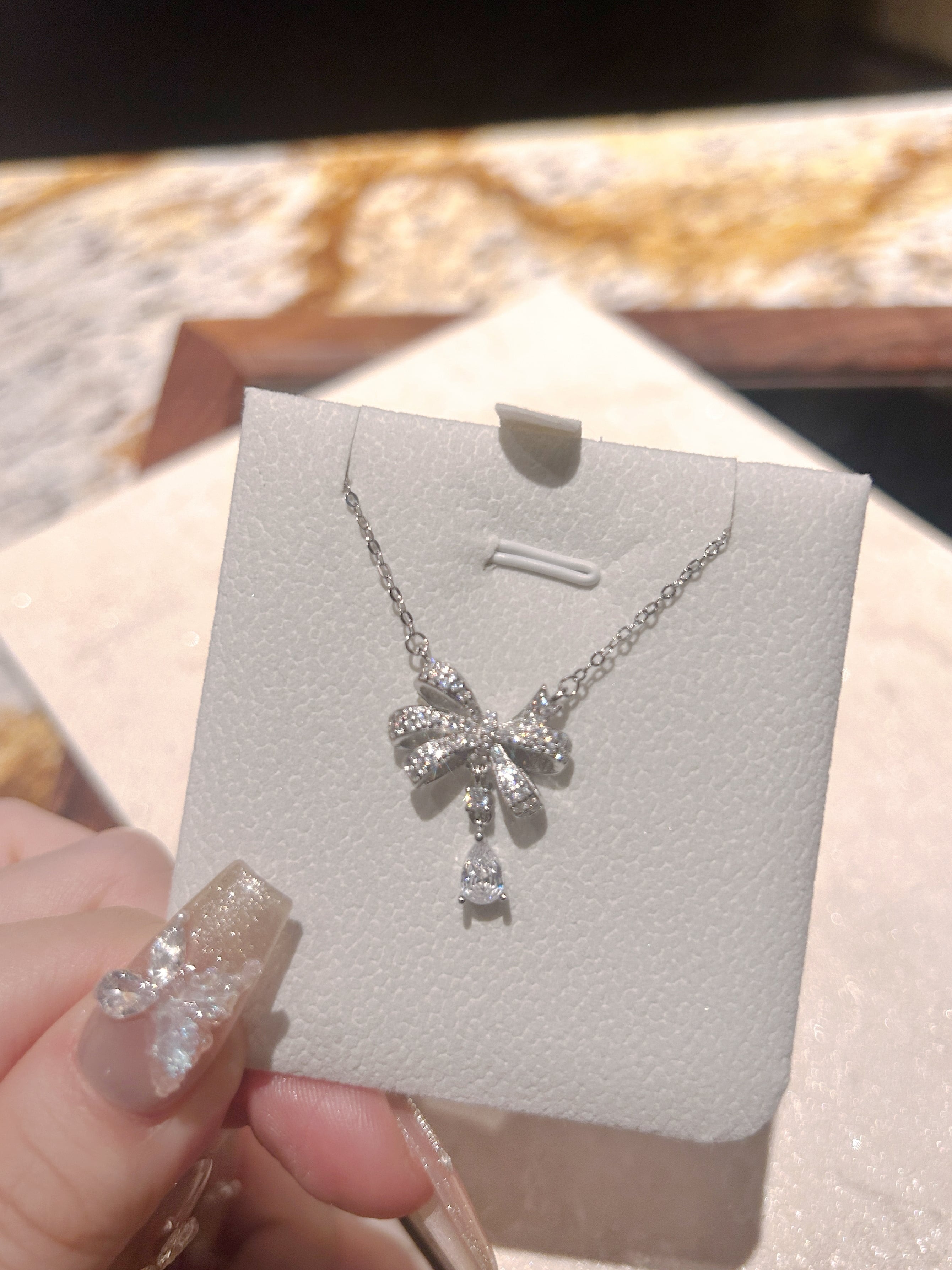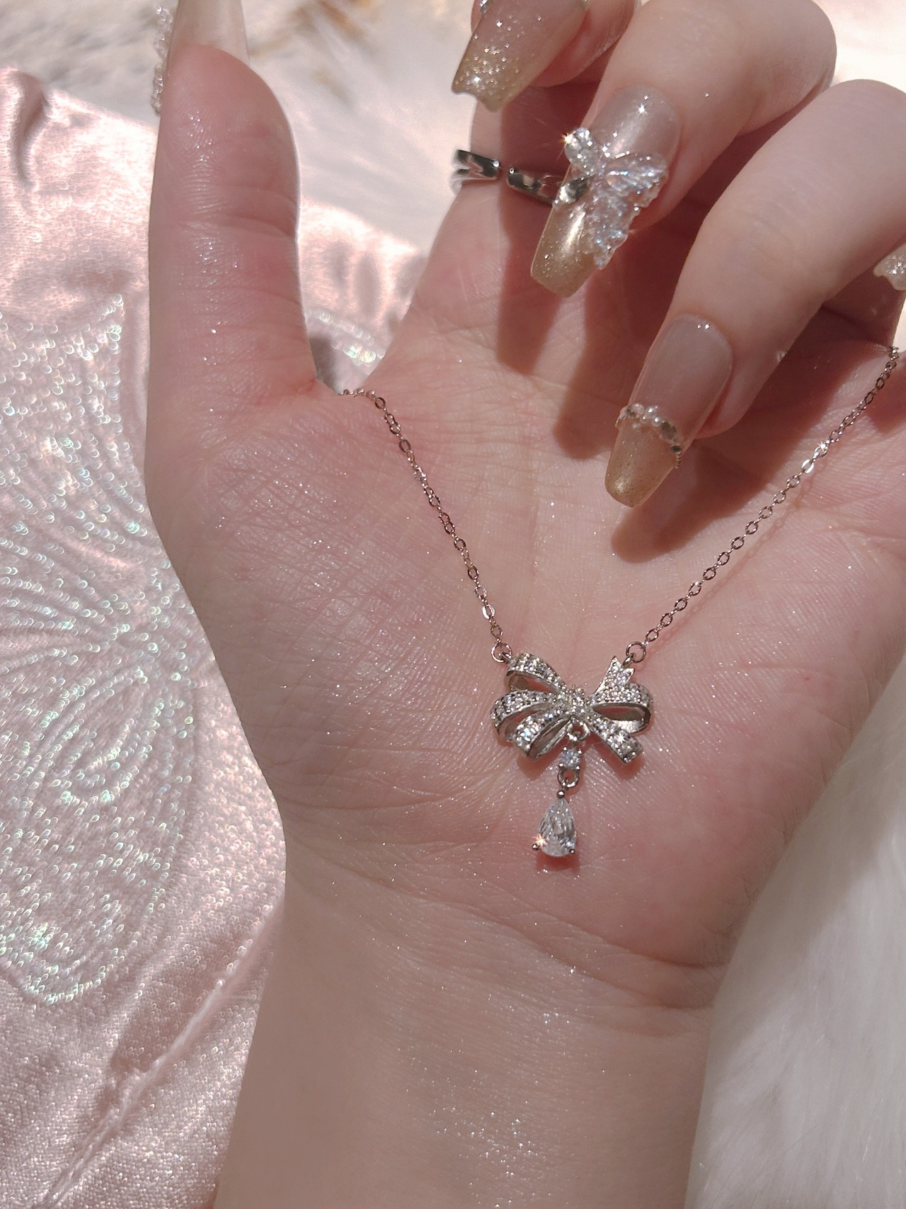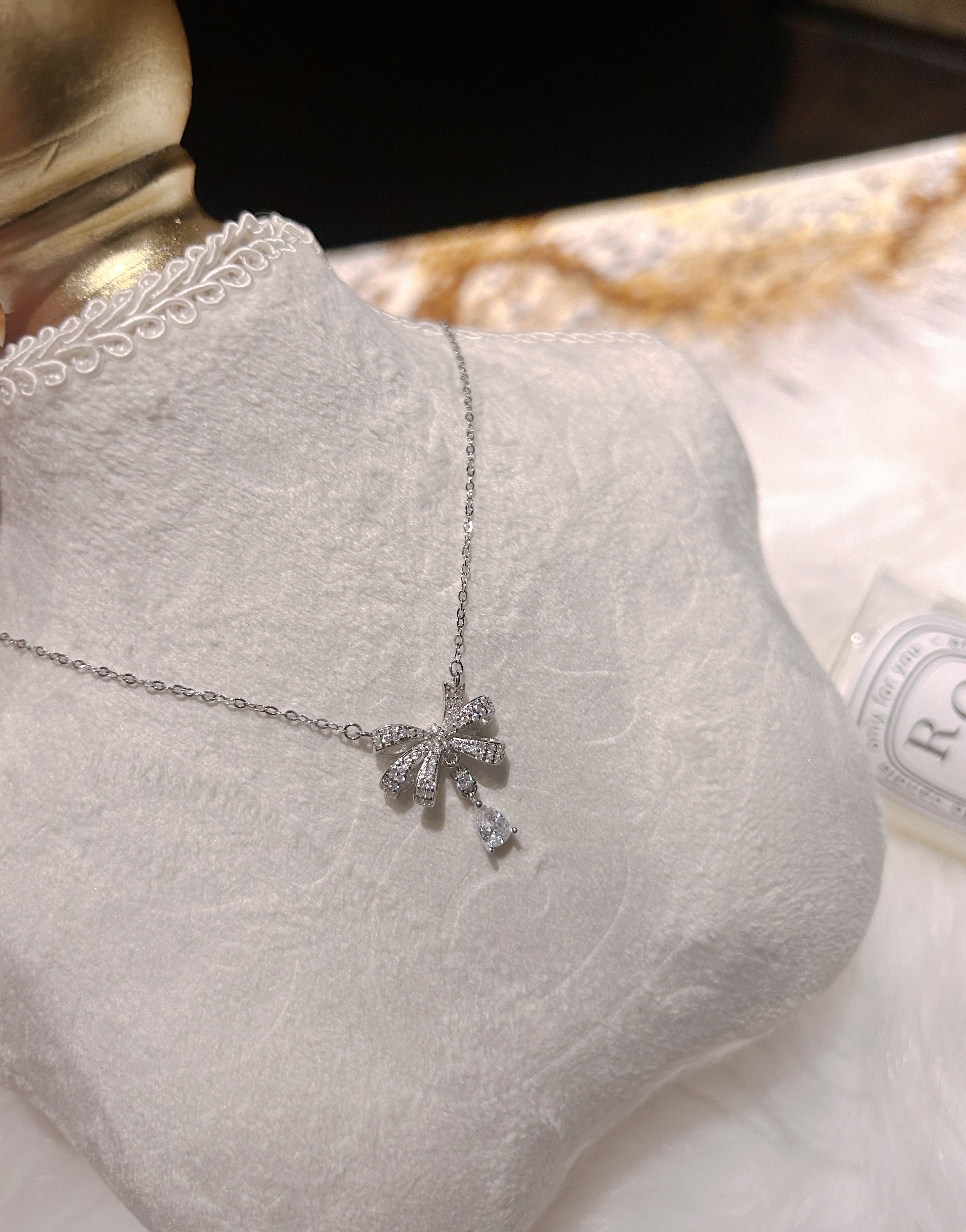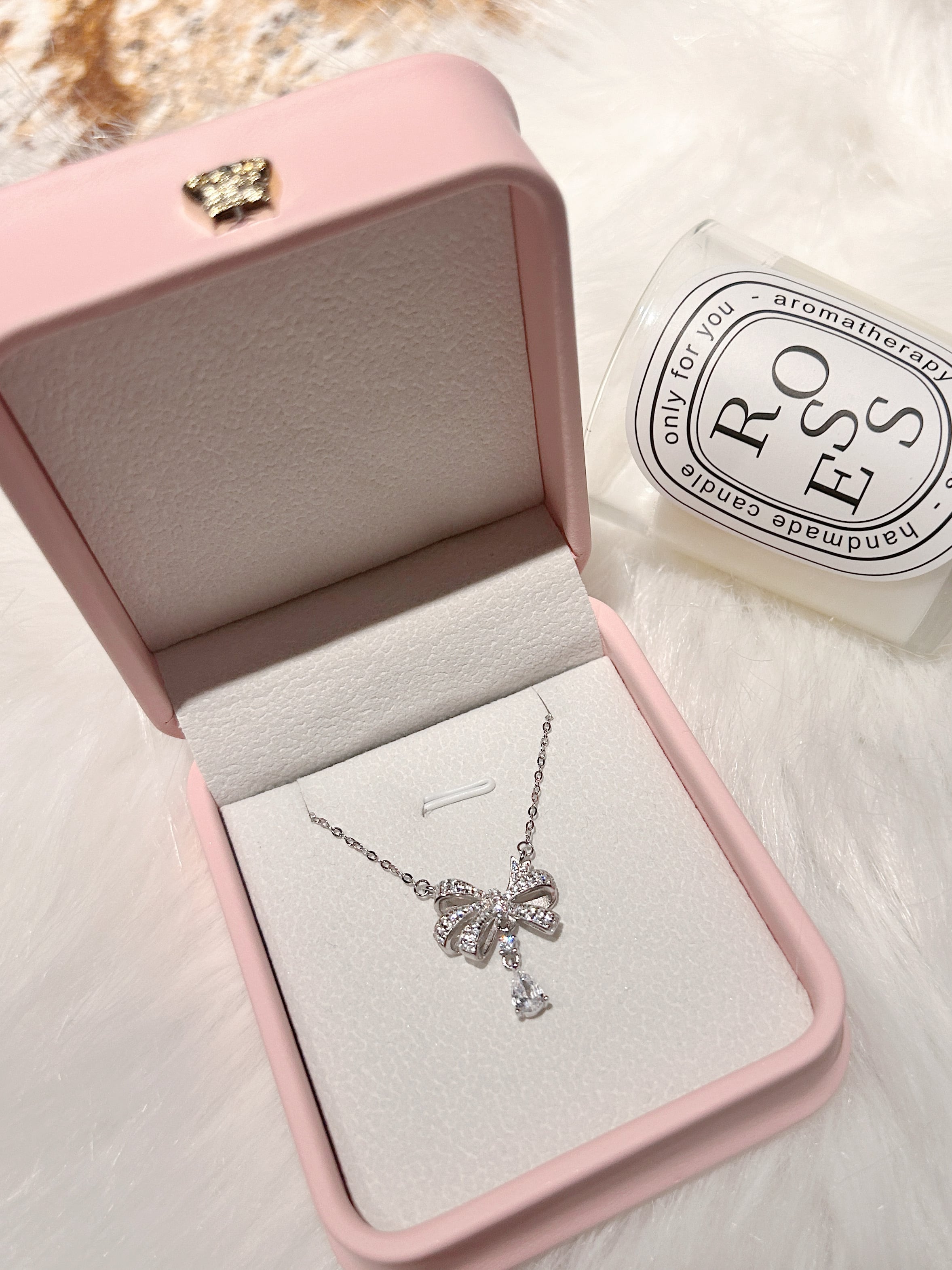 美しいリボンが首元を華やかに彩るGraceful Ribbon Necklace。S925シルバーを使用しており、上品さと高級感を兼ね備えたデザインが魅力です。長さは調整可能で、さまざまなスタイルに合わせてお楽しみいただけます。