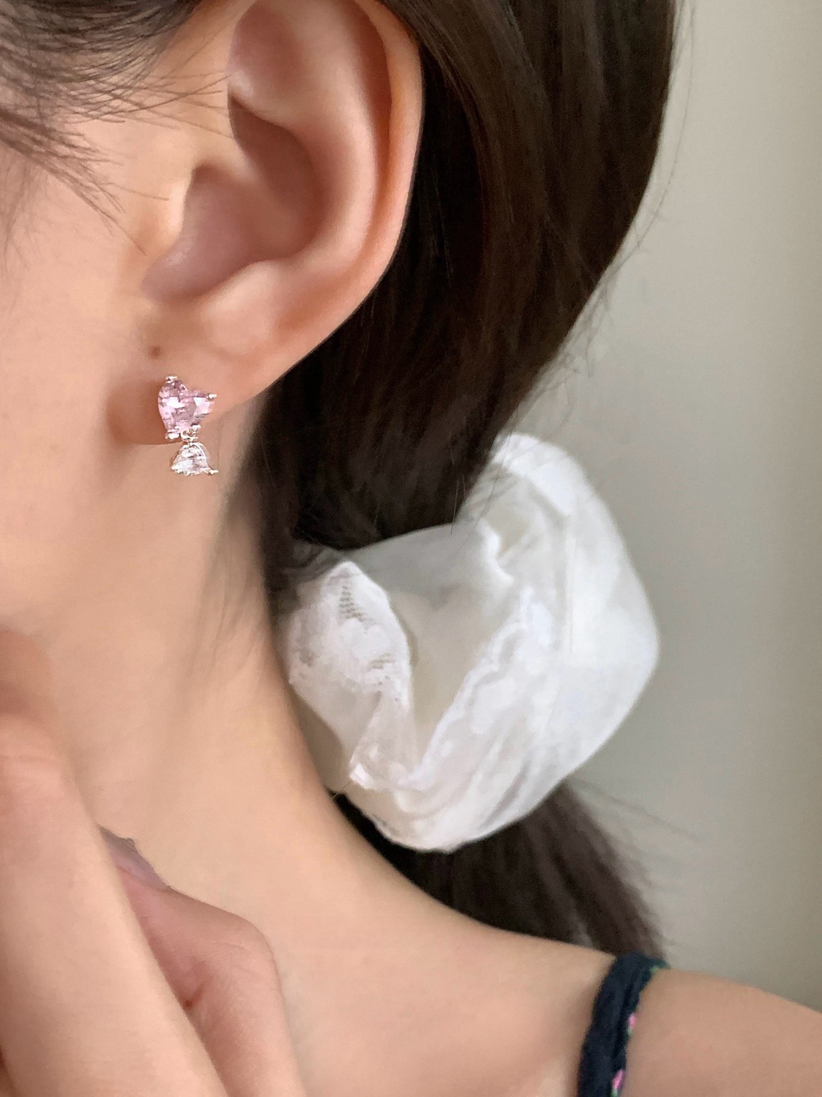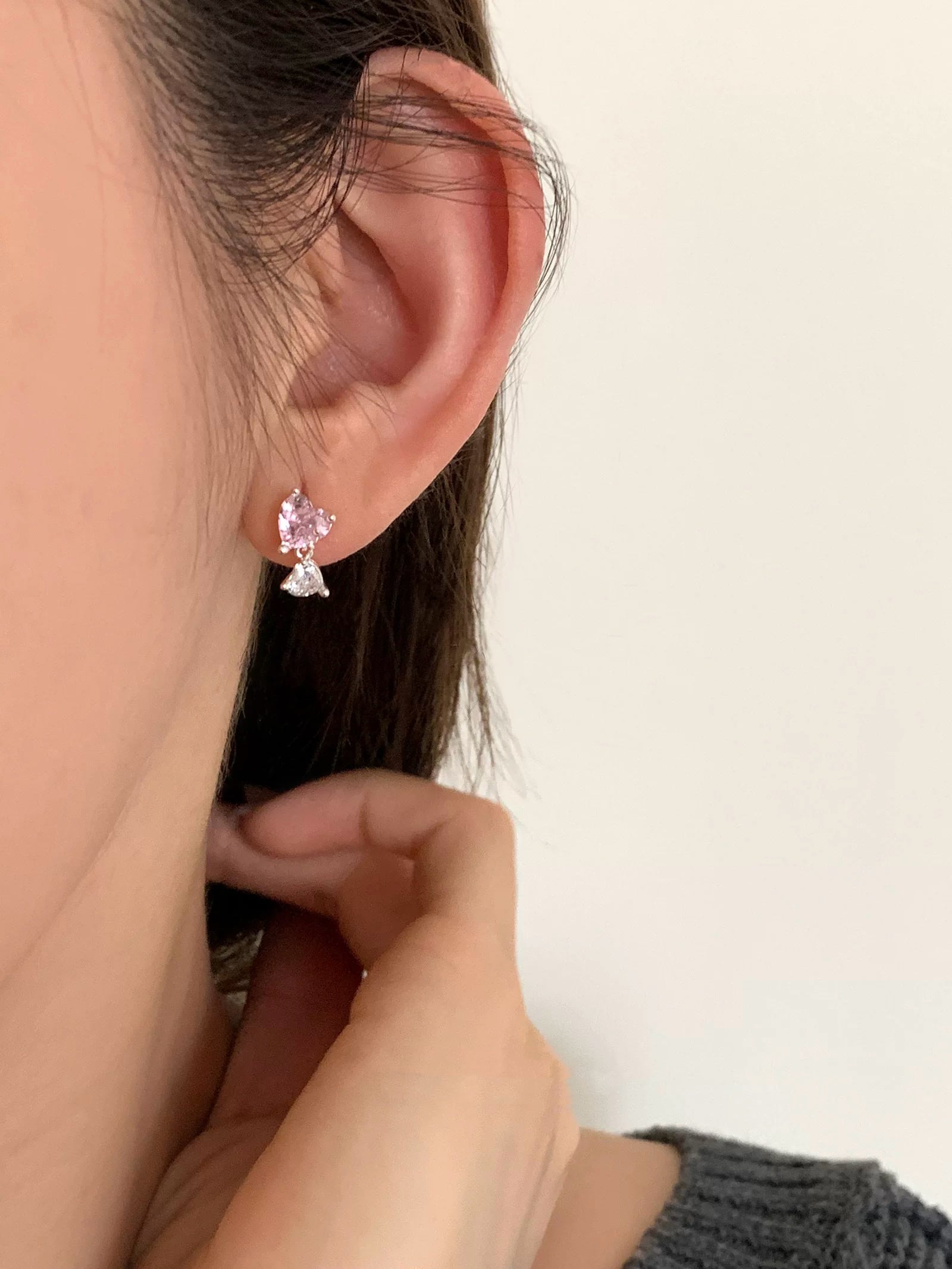 可愛いハートが耳元を彩るPink Twin Heart Pierce 。S925シルバーを使用し、5Aジルコニアのキラキラ感が魅力のこのピアスは、まさに女性らしいエレガンスを引き立ててくれます。