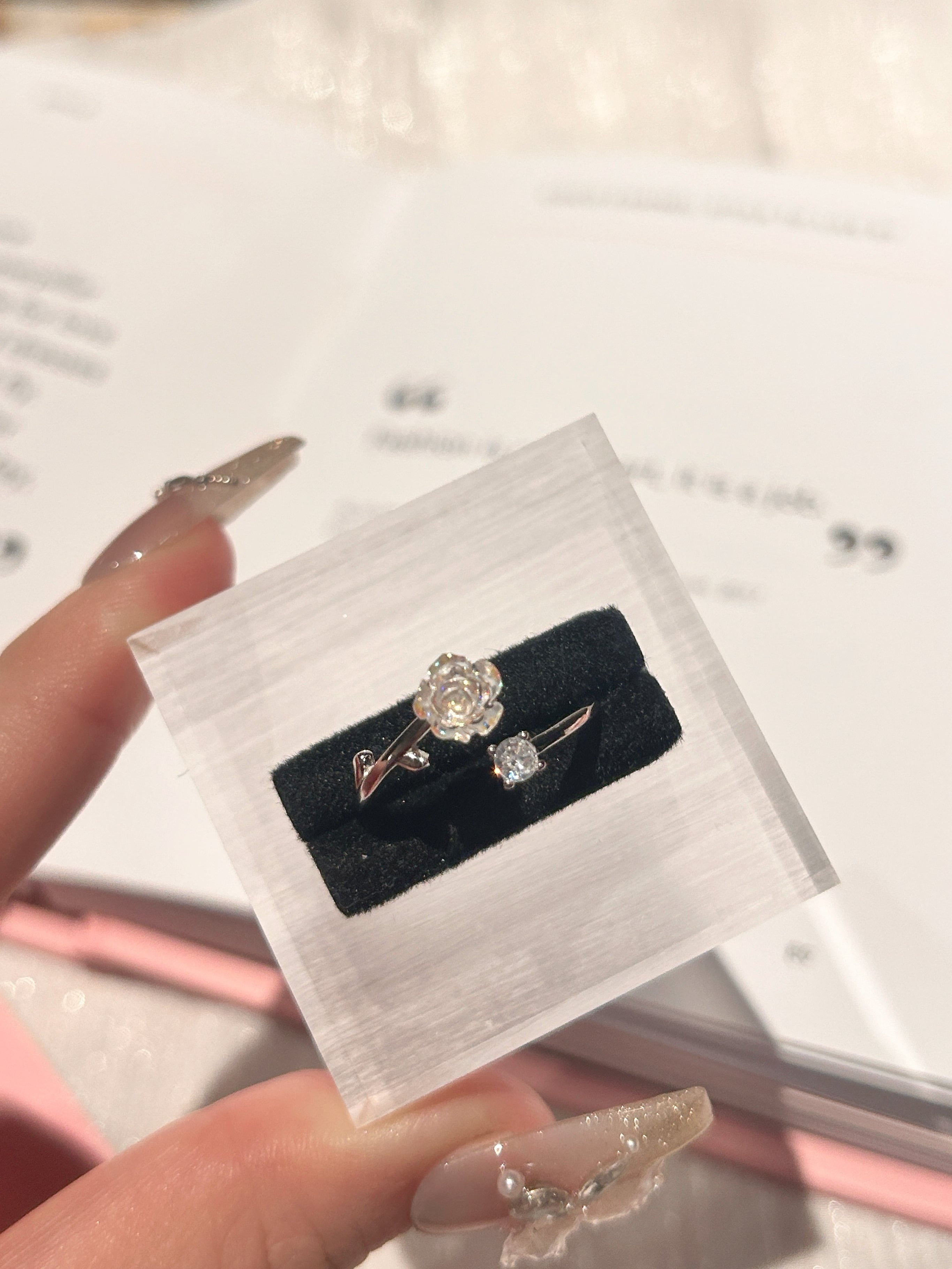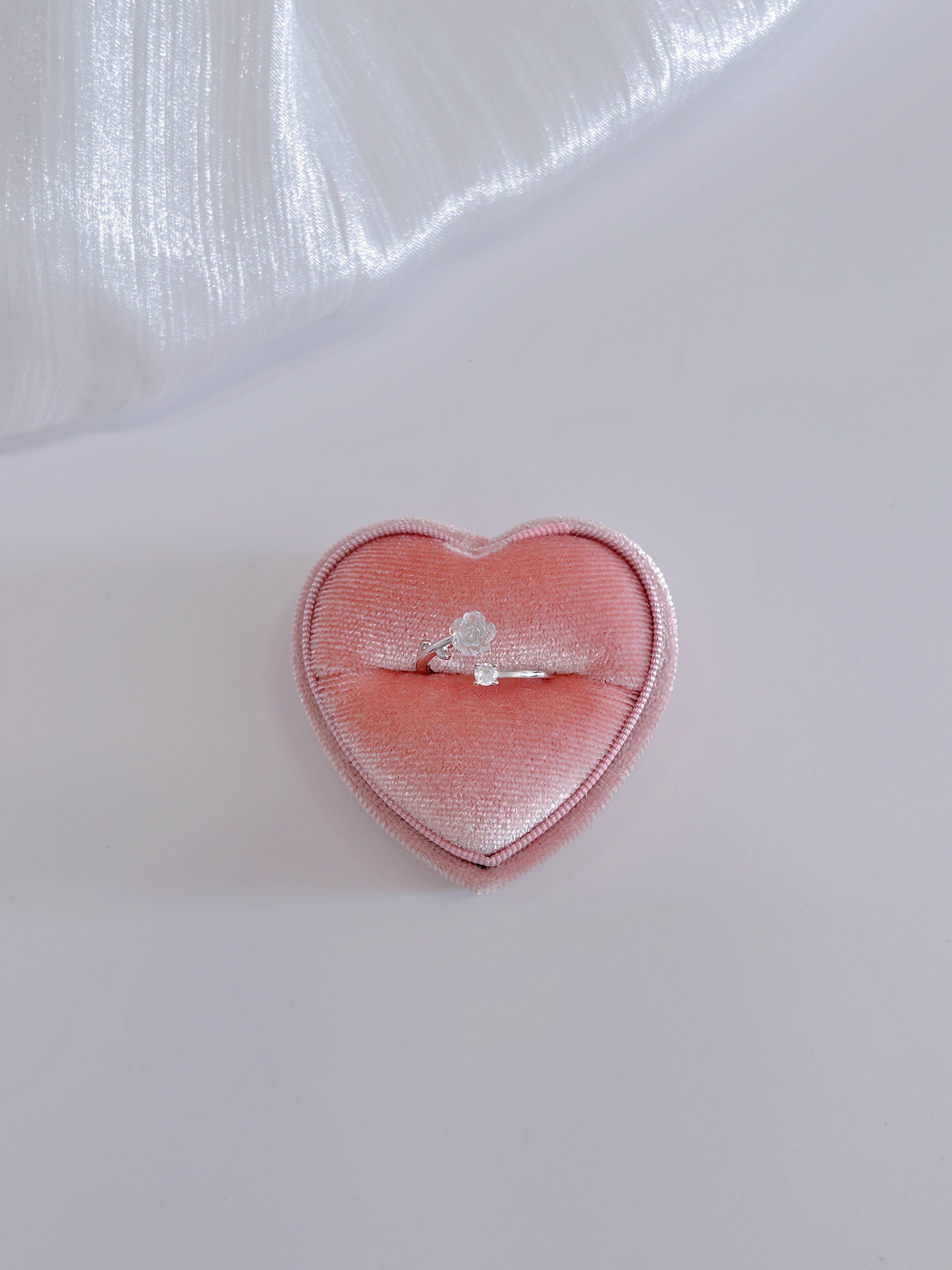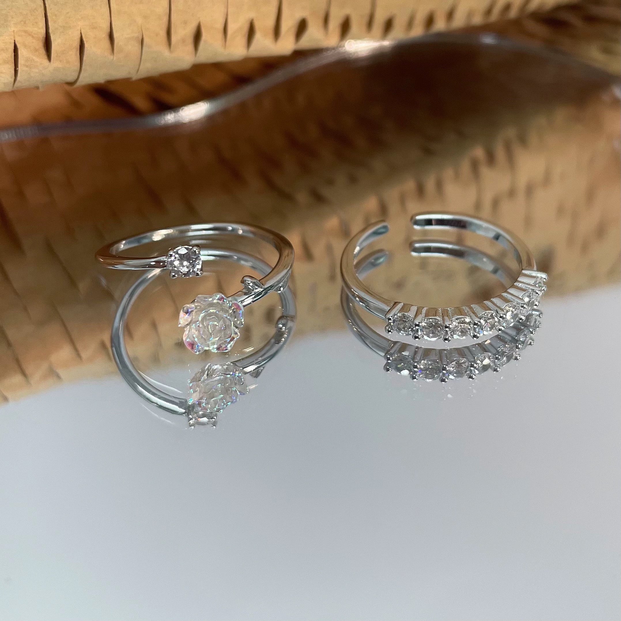 透明感あふれるローズモチーフが可憐に輝く、S925シルバーのオープンリング。