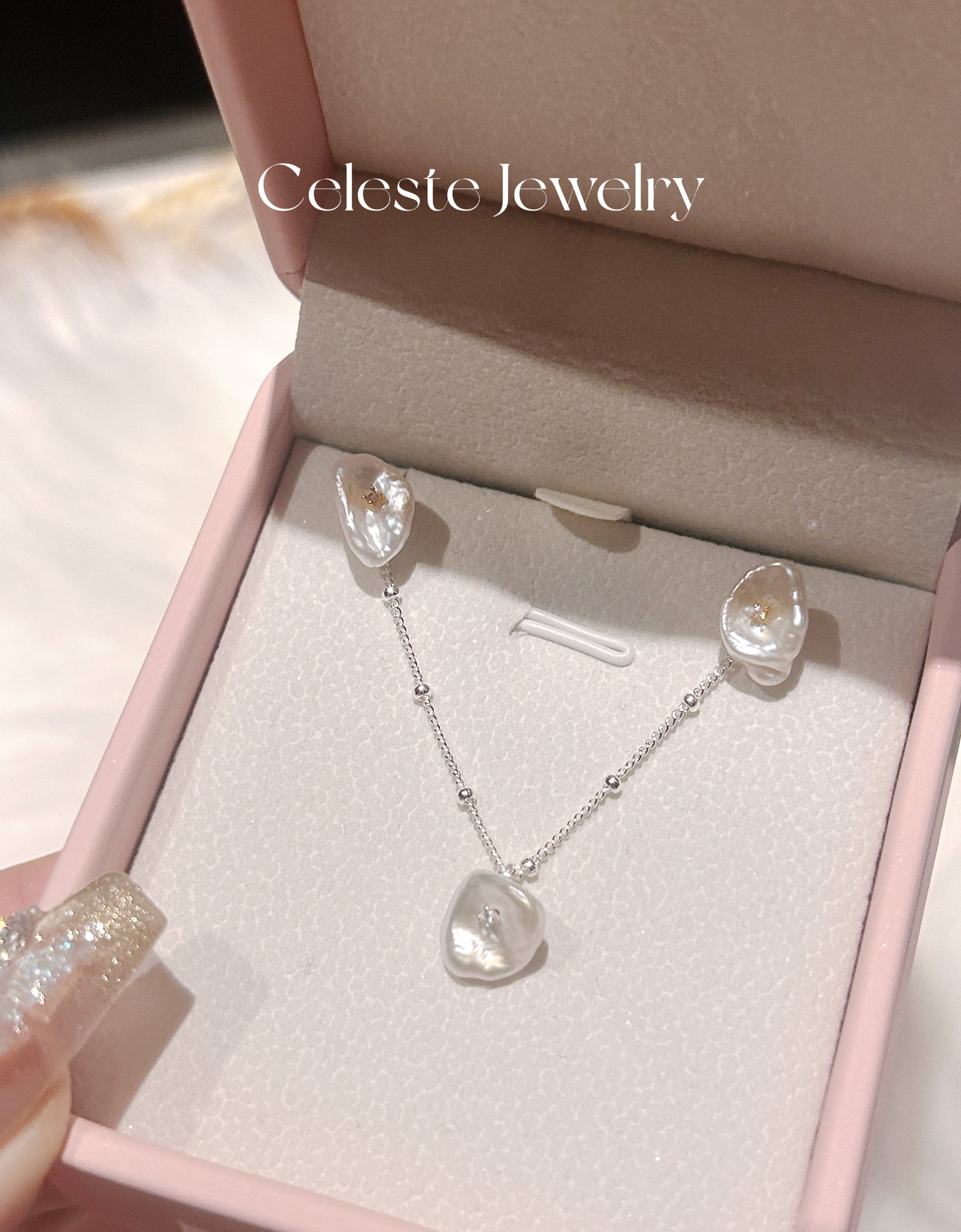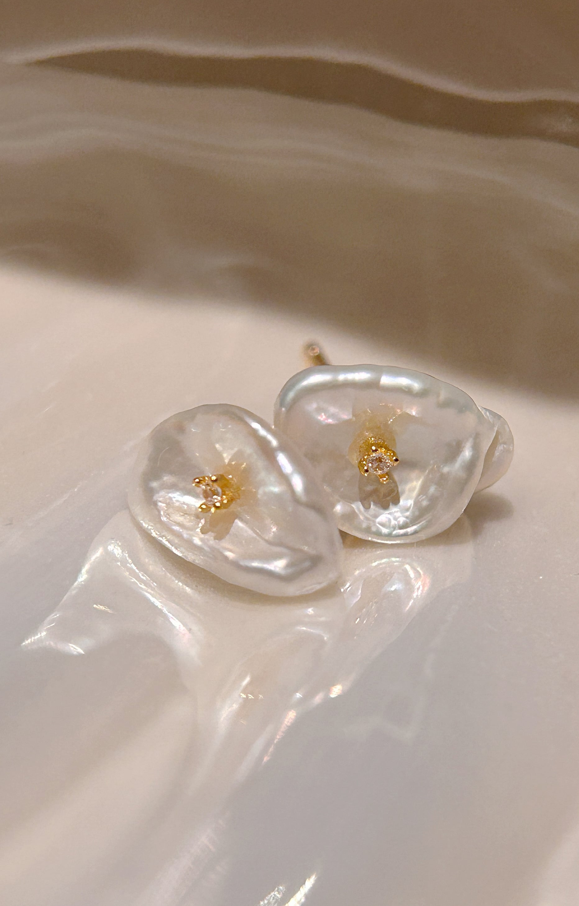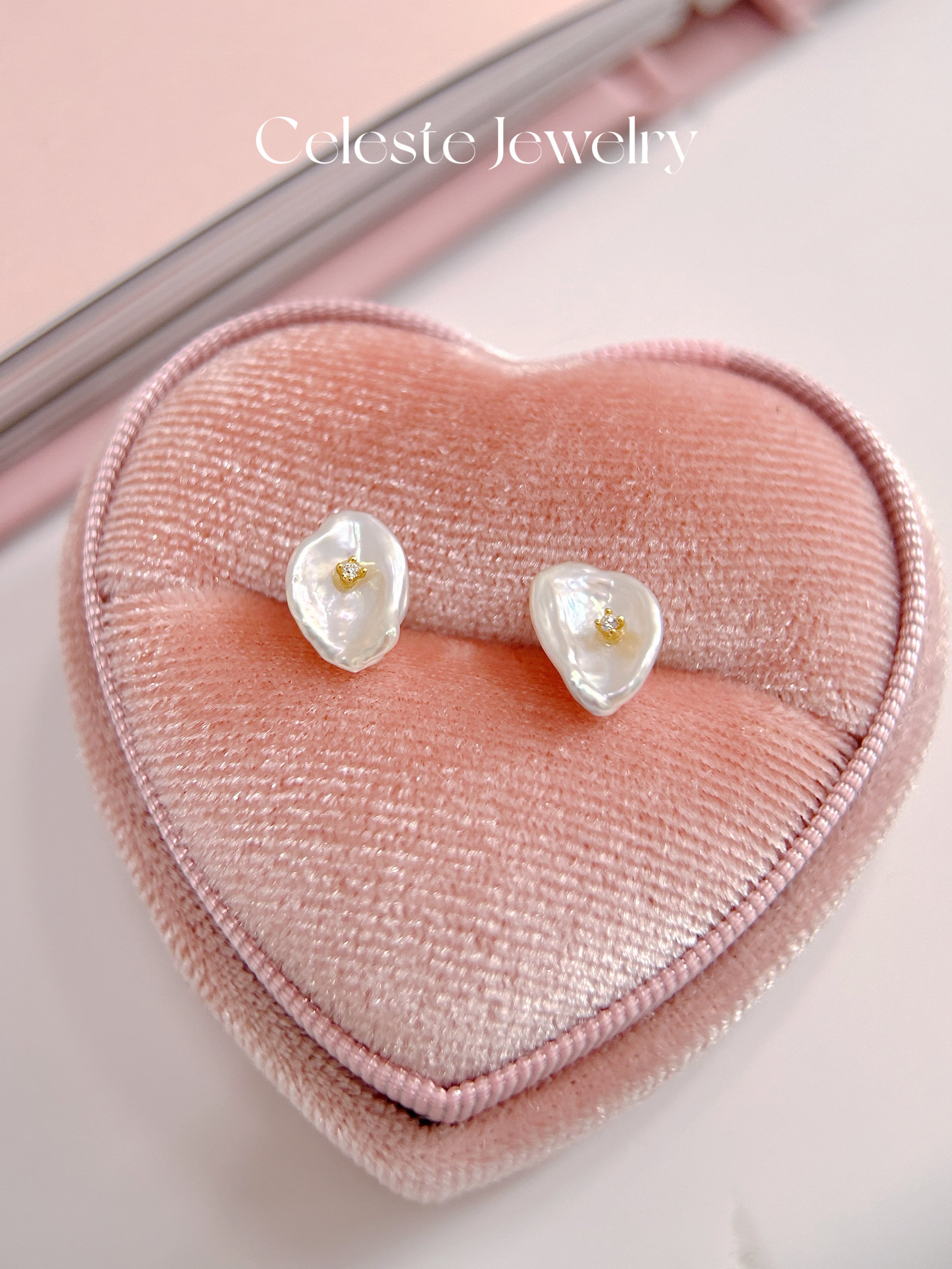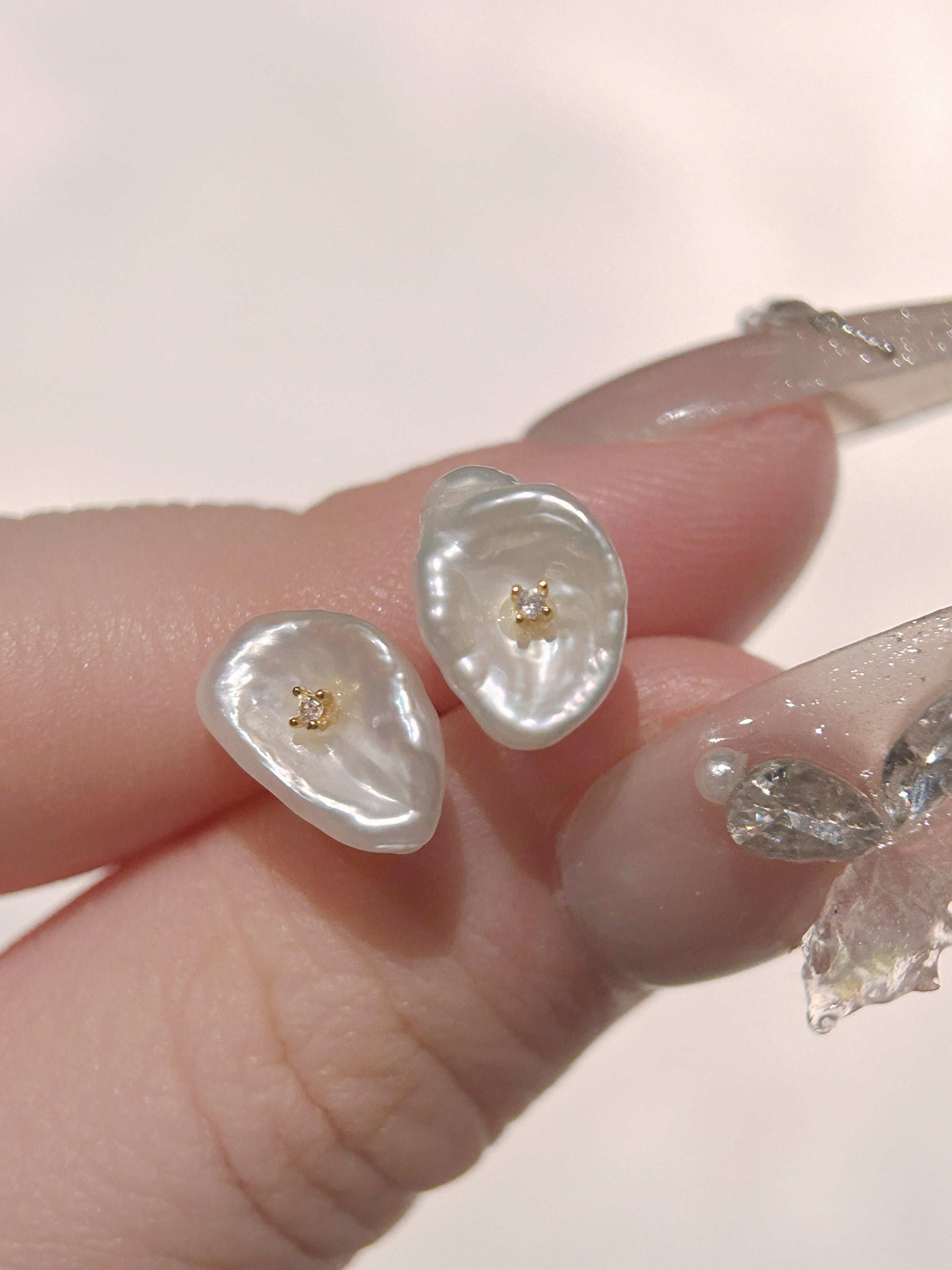 柔らかな光沢と唯一無二のフォルムが美しい、バロックパールピアスです。
