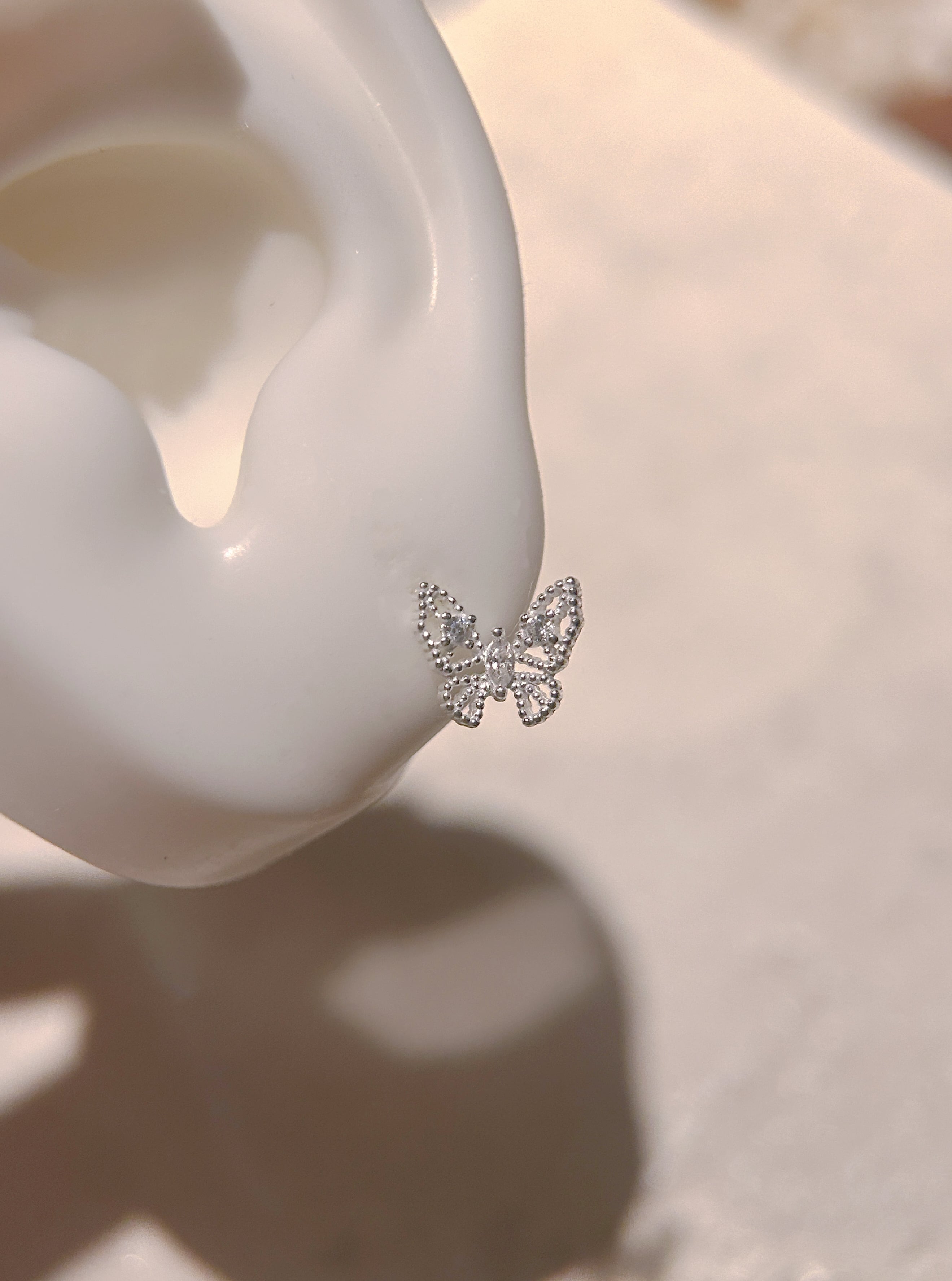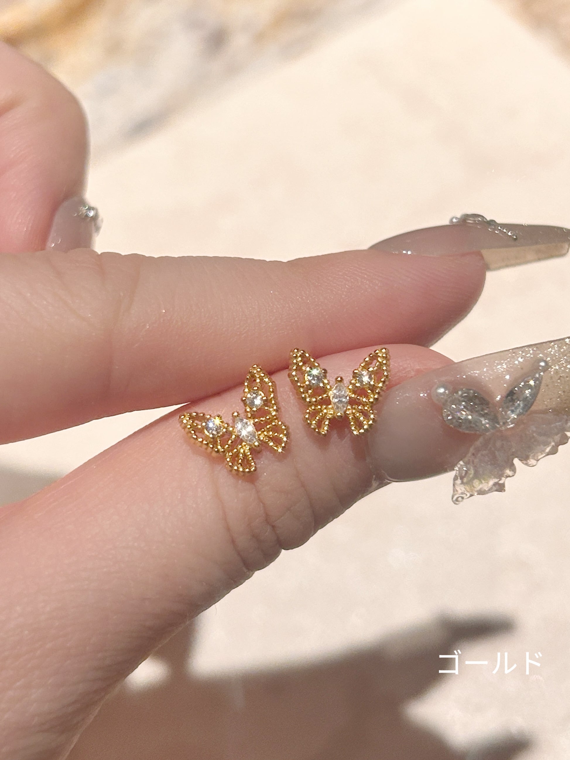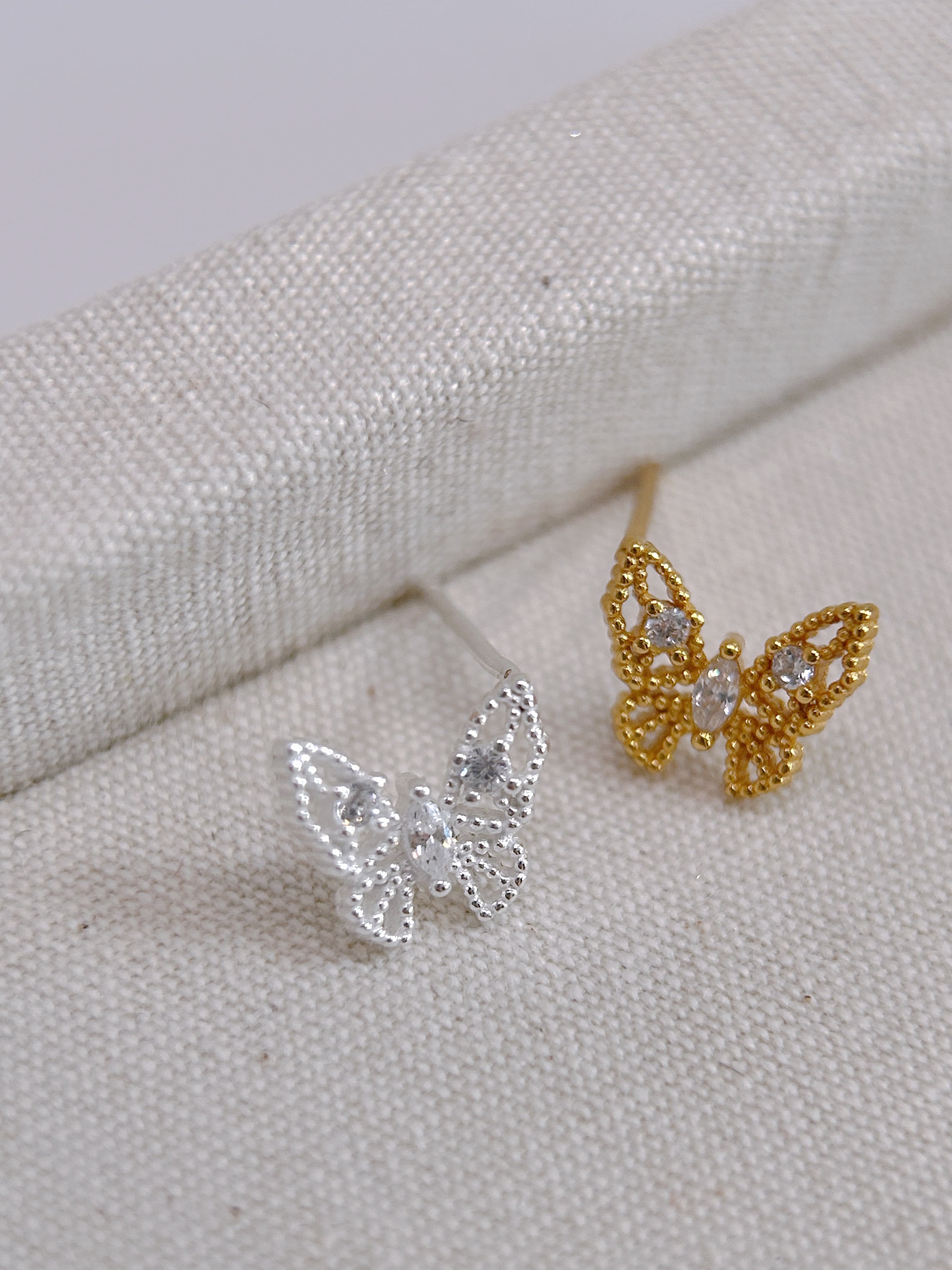 繊細なレースのような羽を纏った、Celesteオリジナルのバタフライピアス。