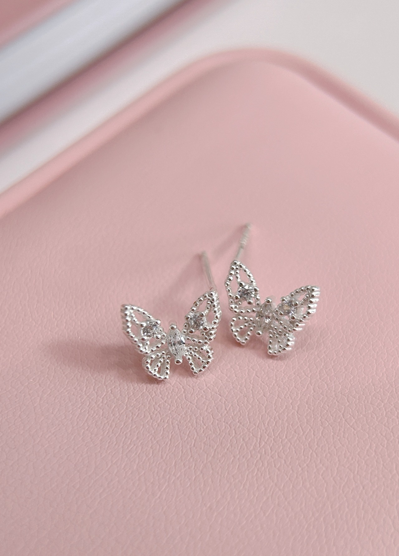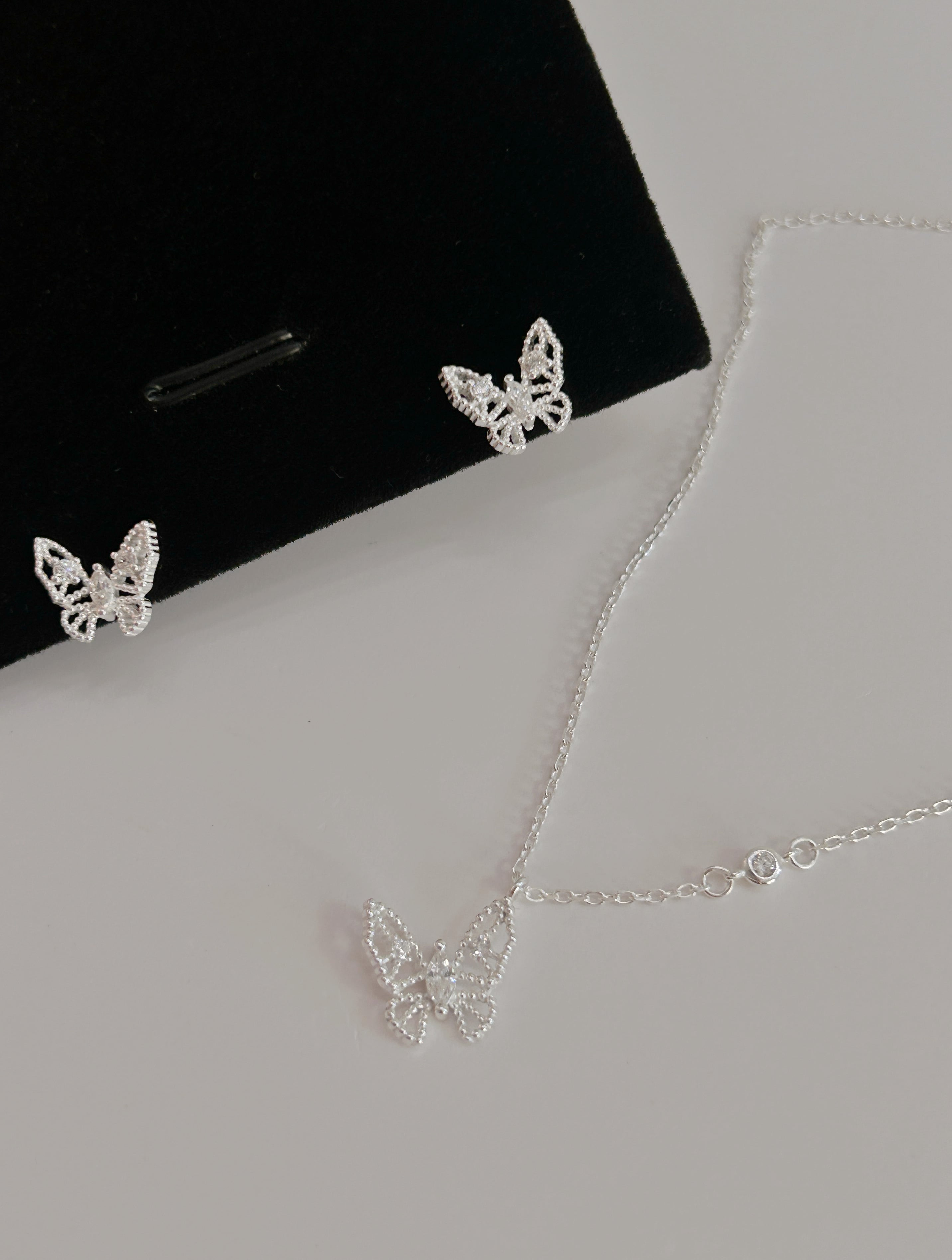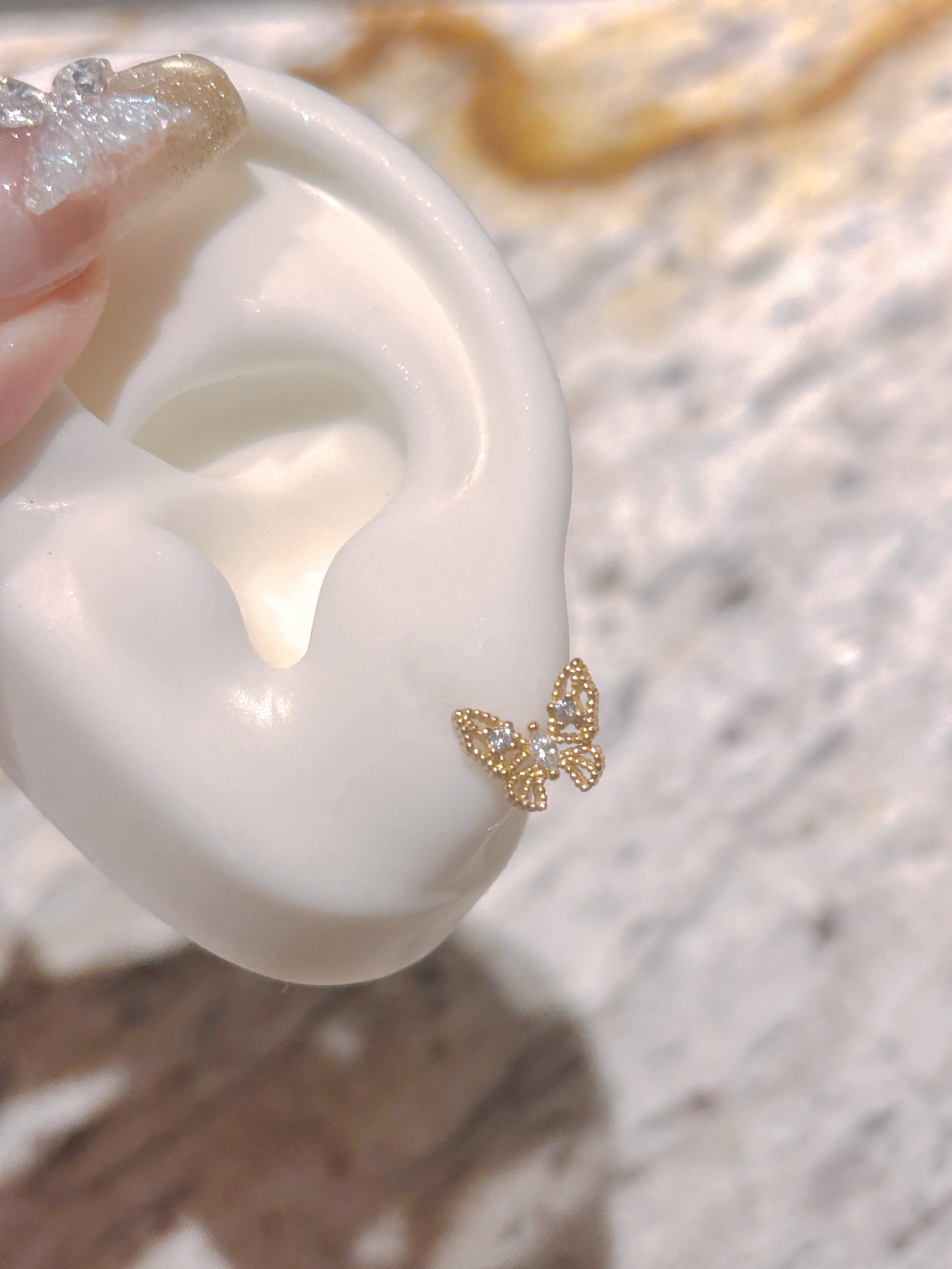 繊細なレースのような羽を纏った、Celesteオリジナルのバタフライピアス。