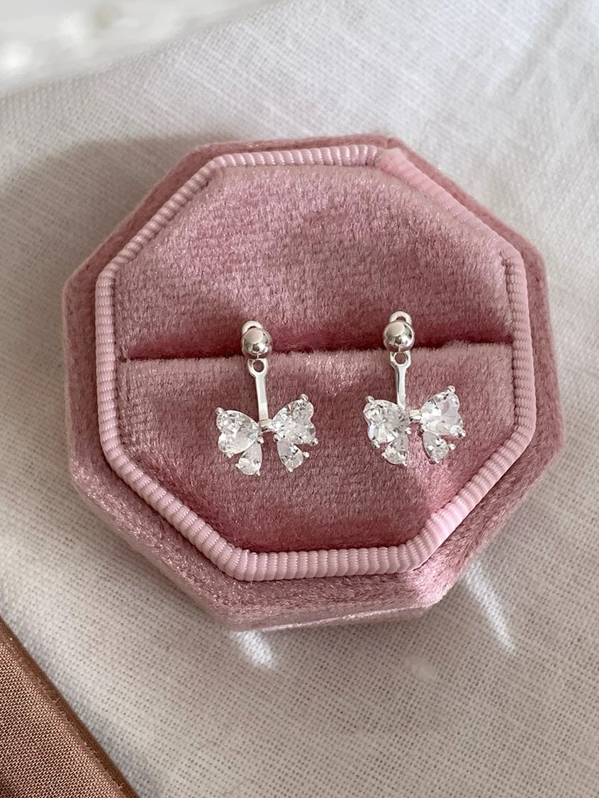 繊細にきらめくリボンモチーフが耳元を華やかに飾る、S925シルバー×5Aジルコニアの上質ピアス。