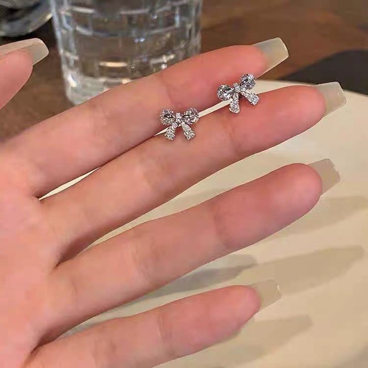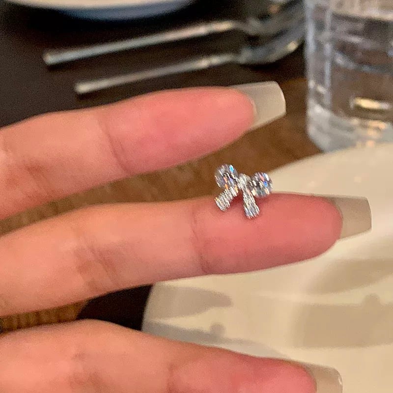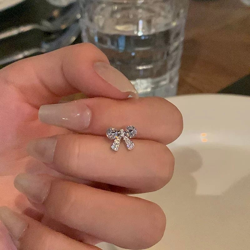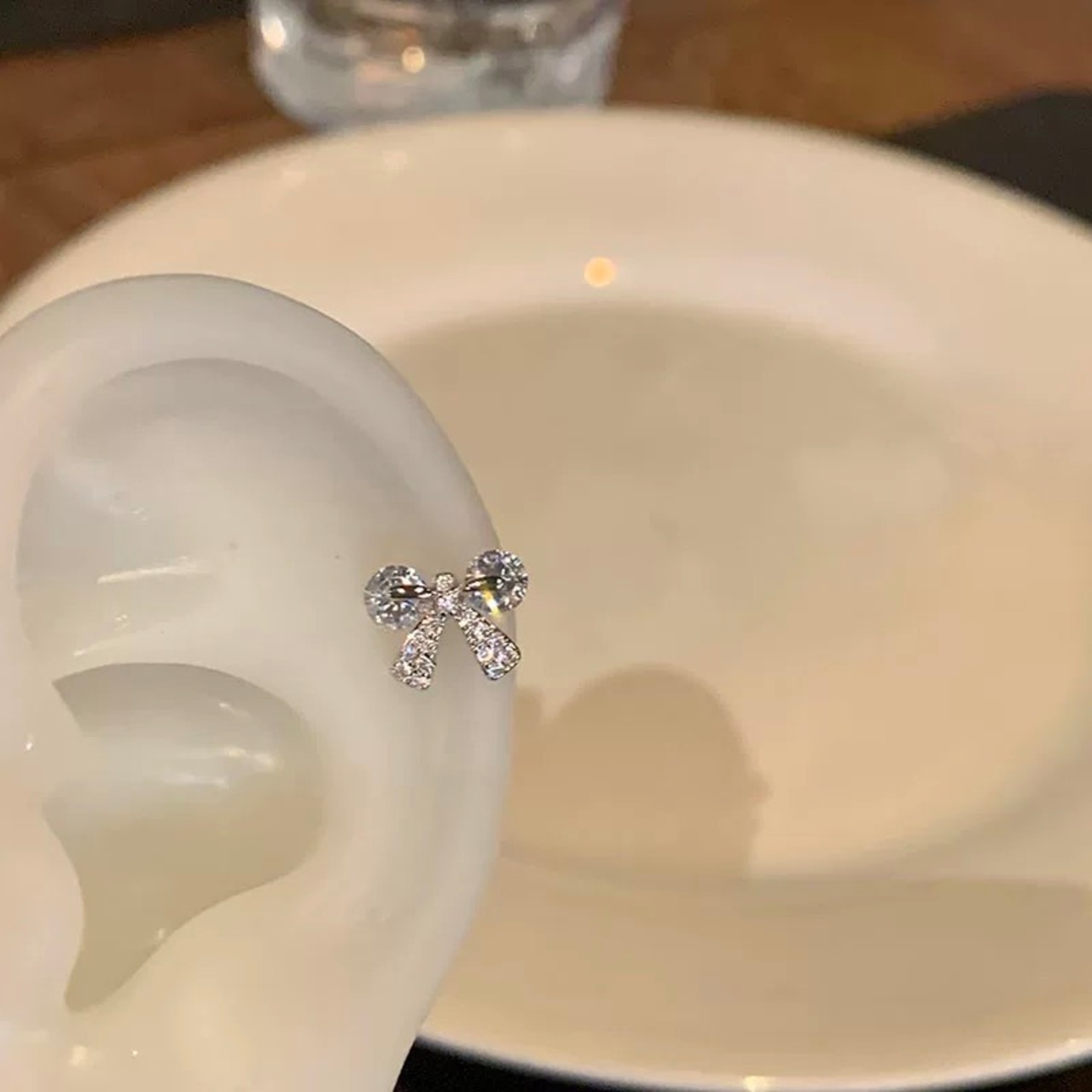 小さめのリボンシルエットが耳元でさりげなく輝く、上品かわいい軟骨ピアスです。
