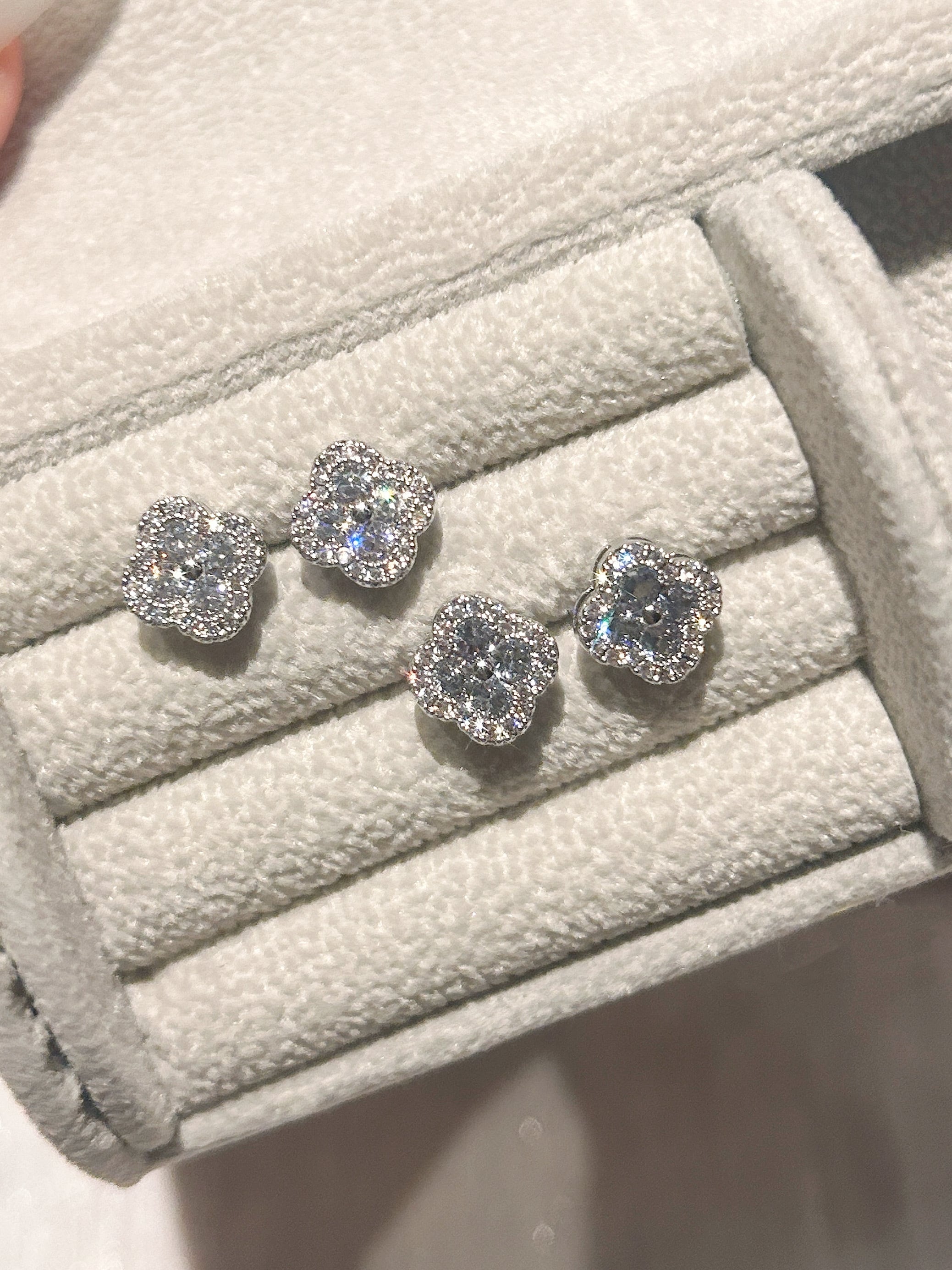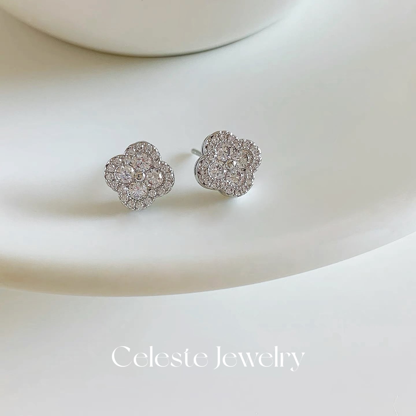 幸せの象徴である“四葉”モチーフに、5Aランクの高透明ジルコニアを贅沢にセッティング。