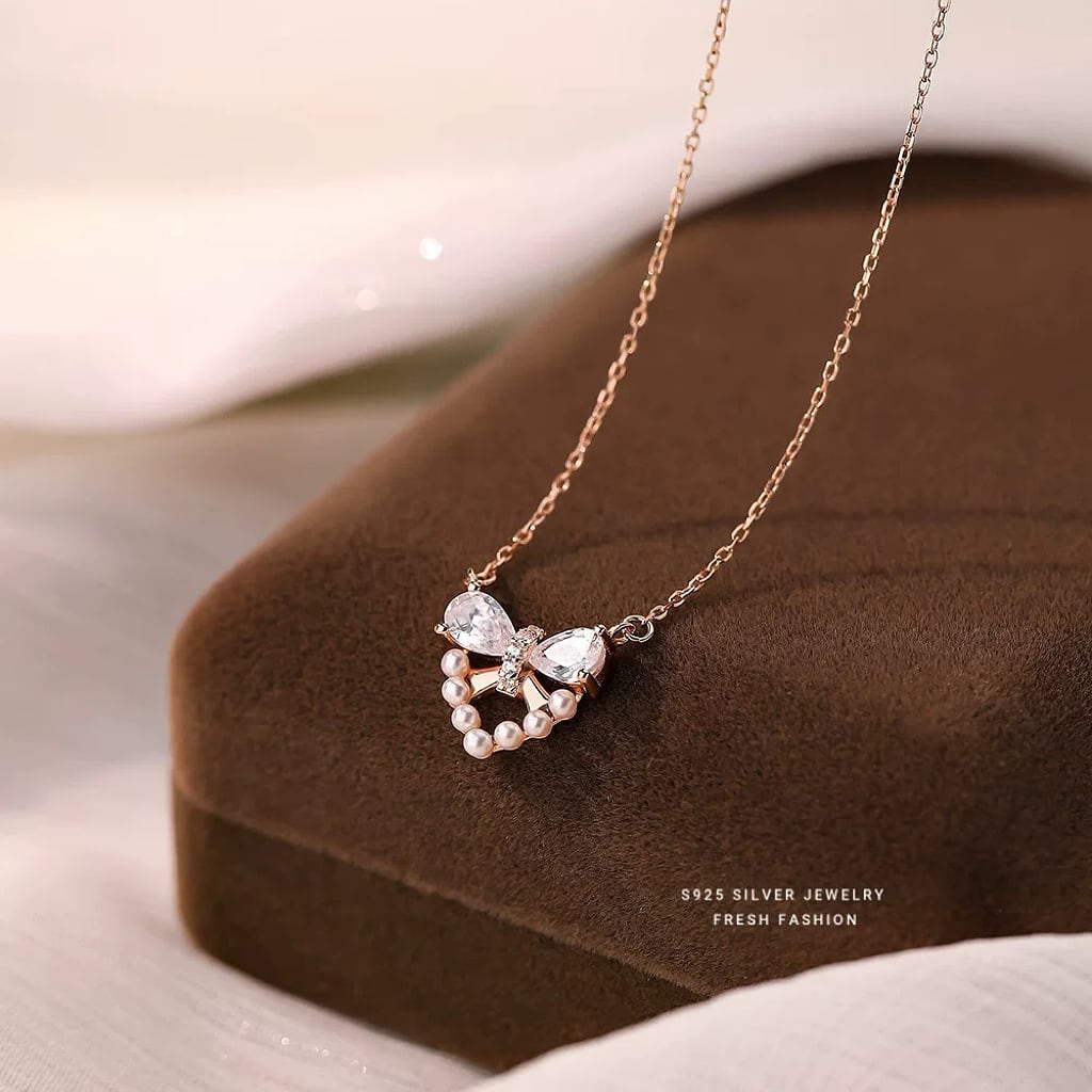 リボン×パールの、ときめきが詰まった特別なネックレス。