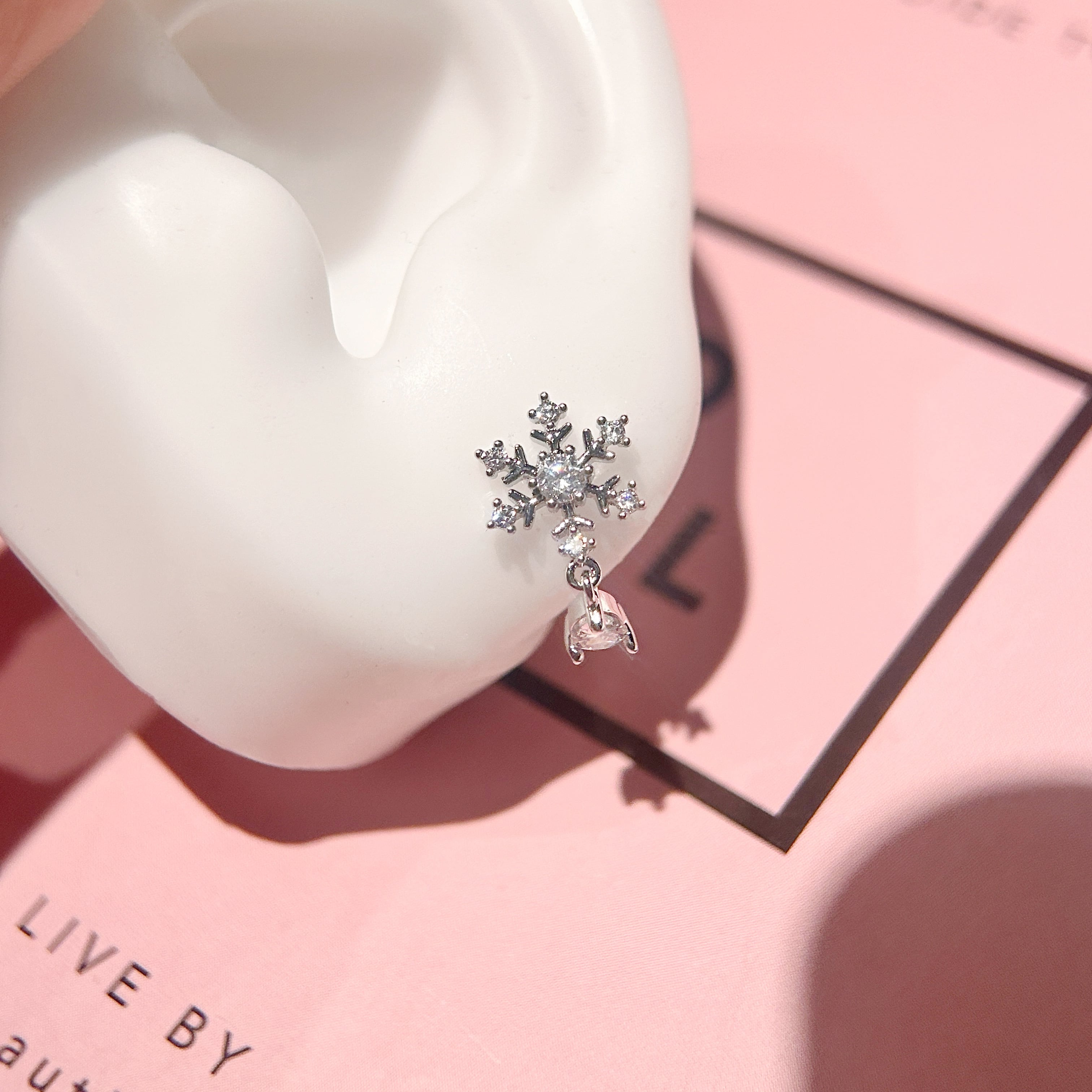 冬の雪の結晶が耳元を優しく彩り、シンプルながらも存在感を放つピアスです。