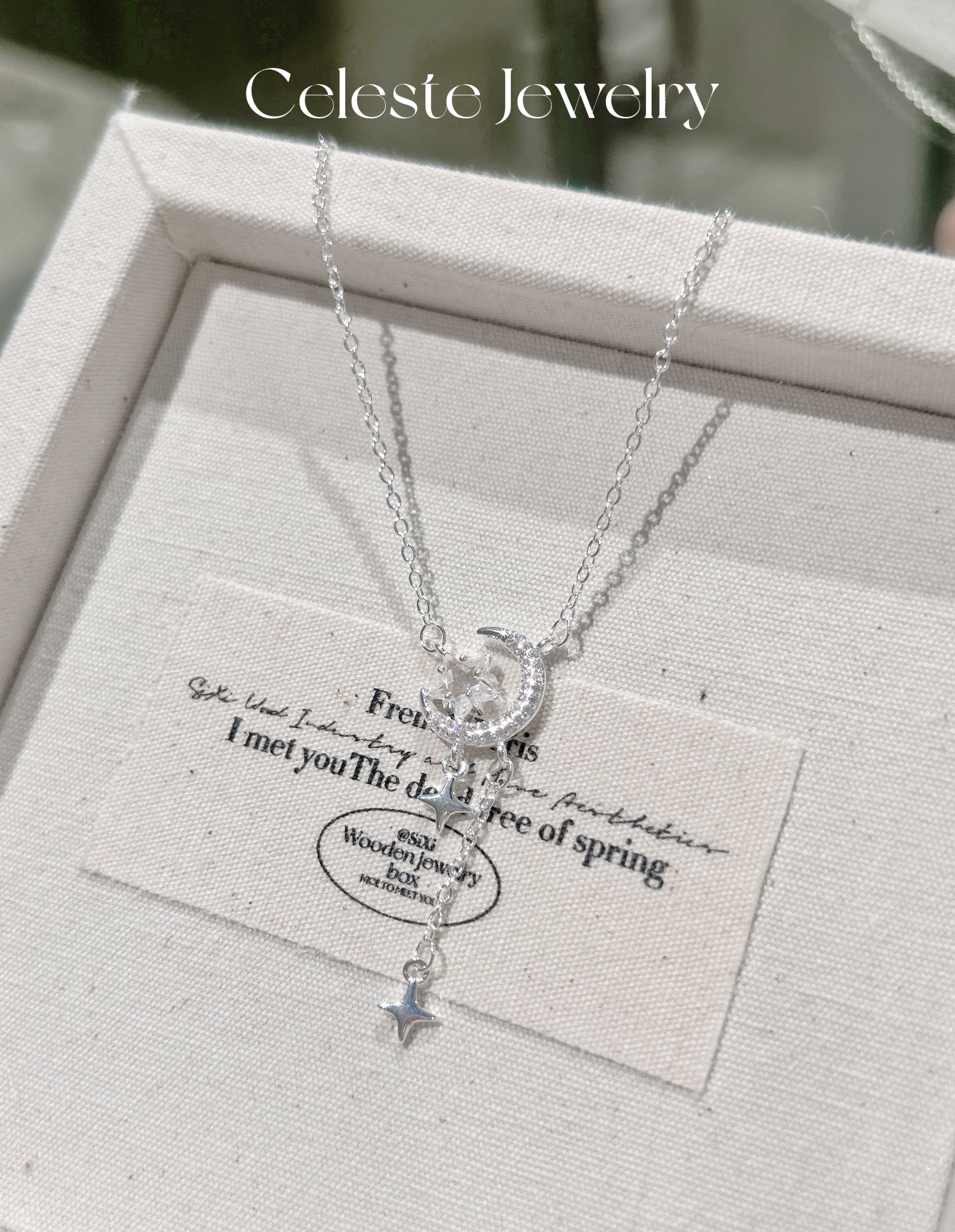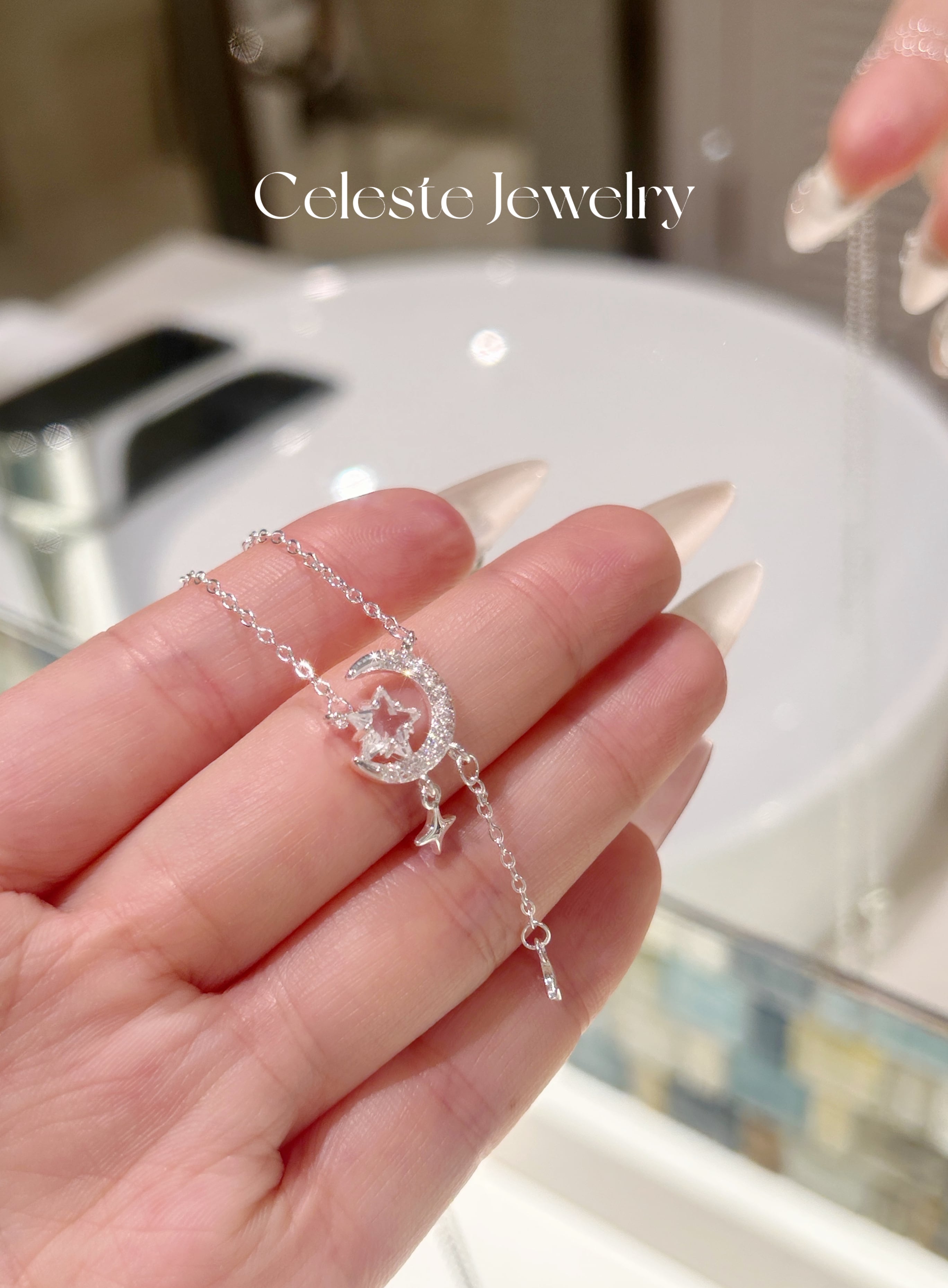 A minimalist tribute to the crescent moon, crafted from premium S999 Pure Silver. This sleek necklace combines a modern silhouette with a brilliant stone for effortless, high-end elegance.