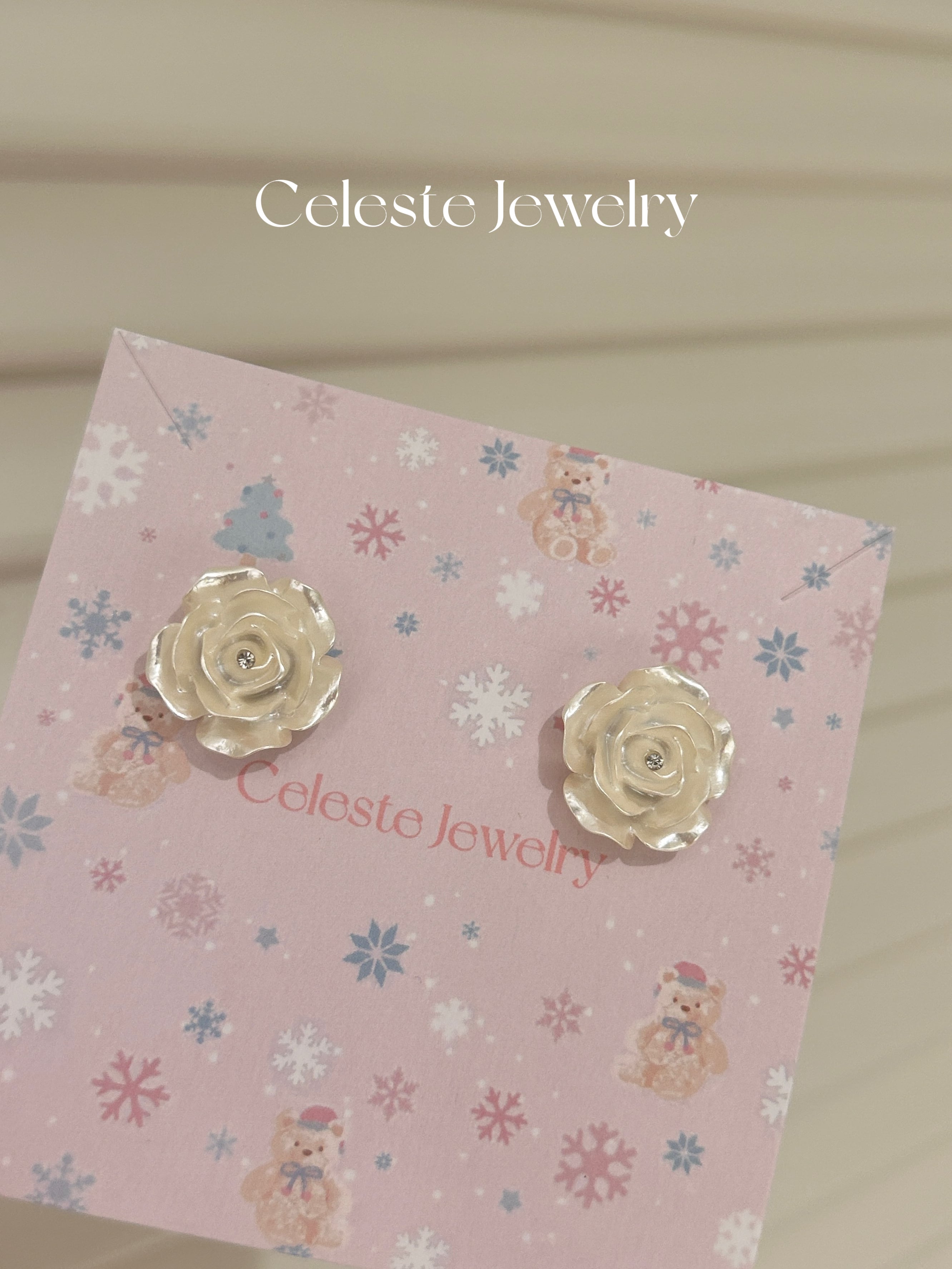 A timeless piece featuring a 3D camellia design with a soft, pearlescent glow. These vintage-inspired studs bring an air of sophisticated French elegance to any look.