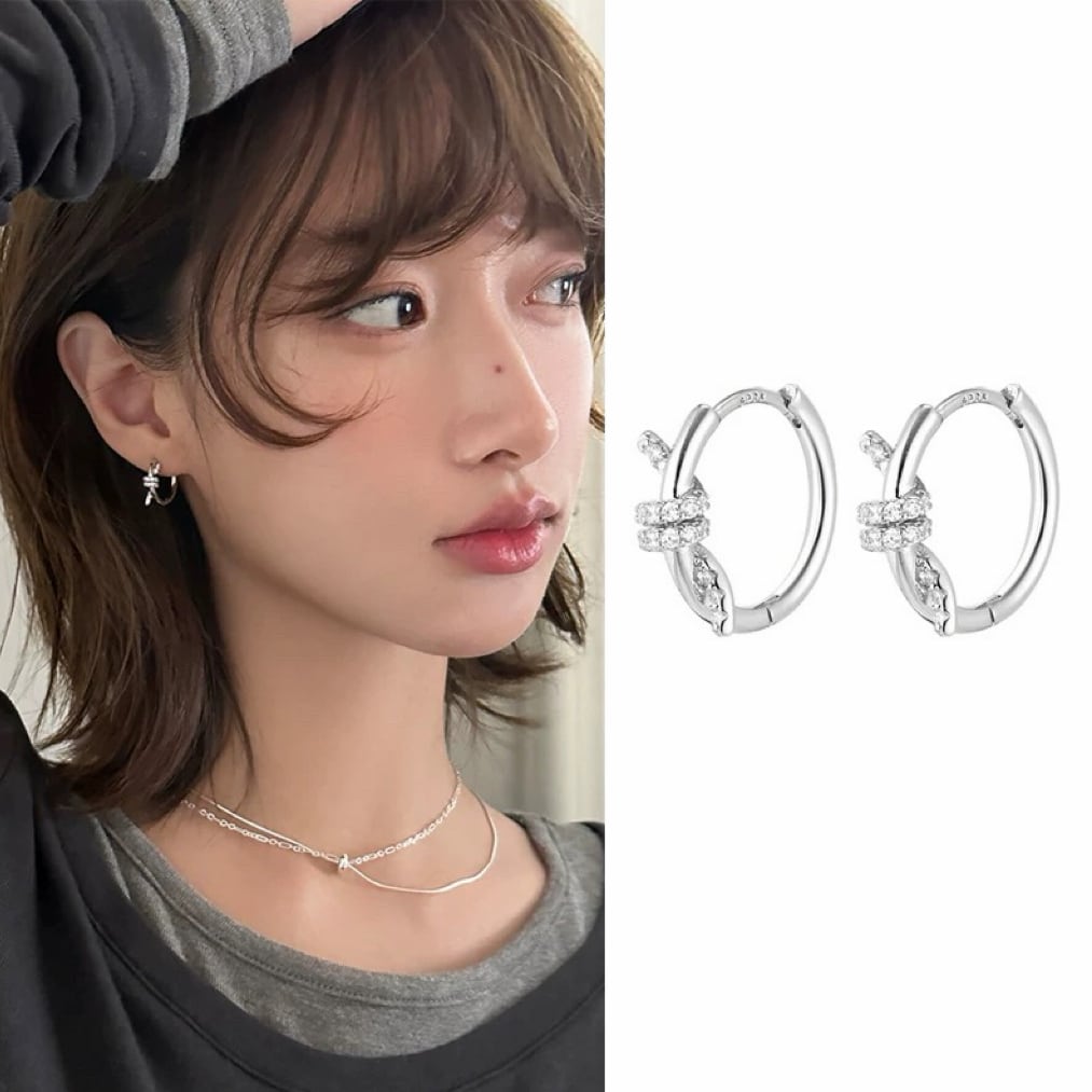 These knot-inspired hoop earrings feature smooth flowing curves accented with delicate stones, creating a refined design that’s both minimal and eye-catching. The knot motif symbolizes connection and strength, adding a subtle meaning to your everyday jewelry.