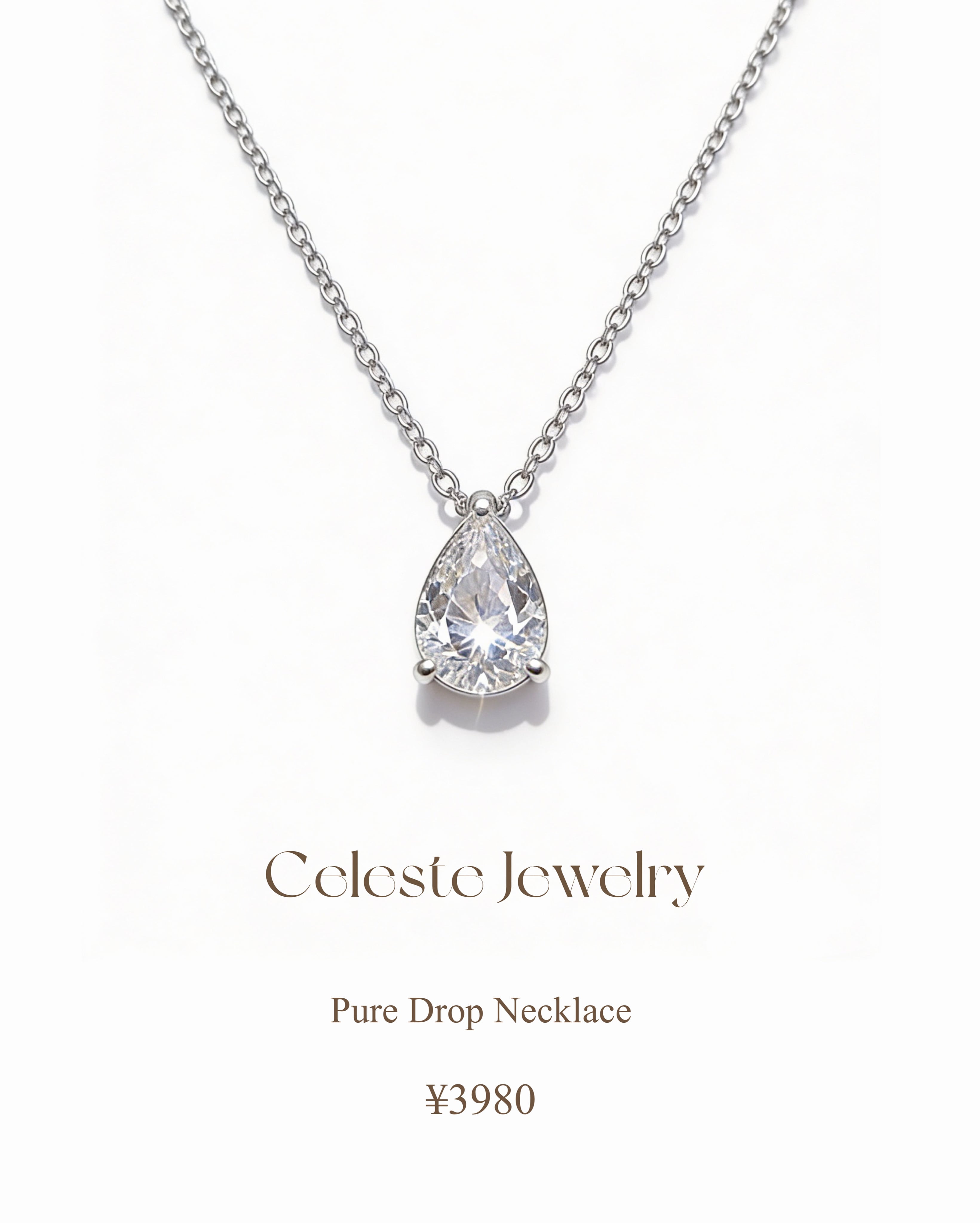一滴のしずくが光を吸い込んだような、息をのむほど美しい煌めきがデコルテを彩ります。