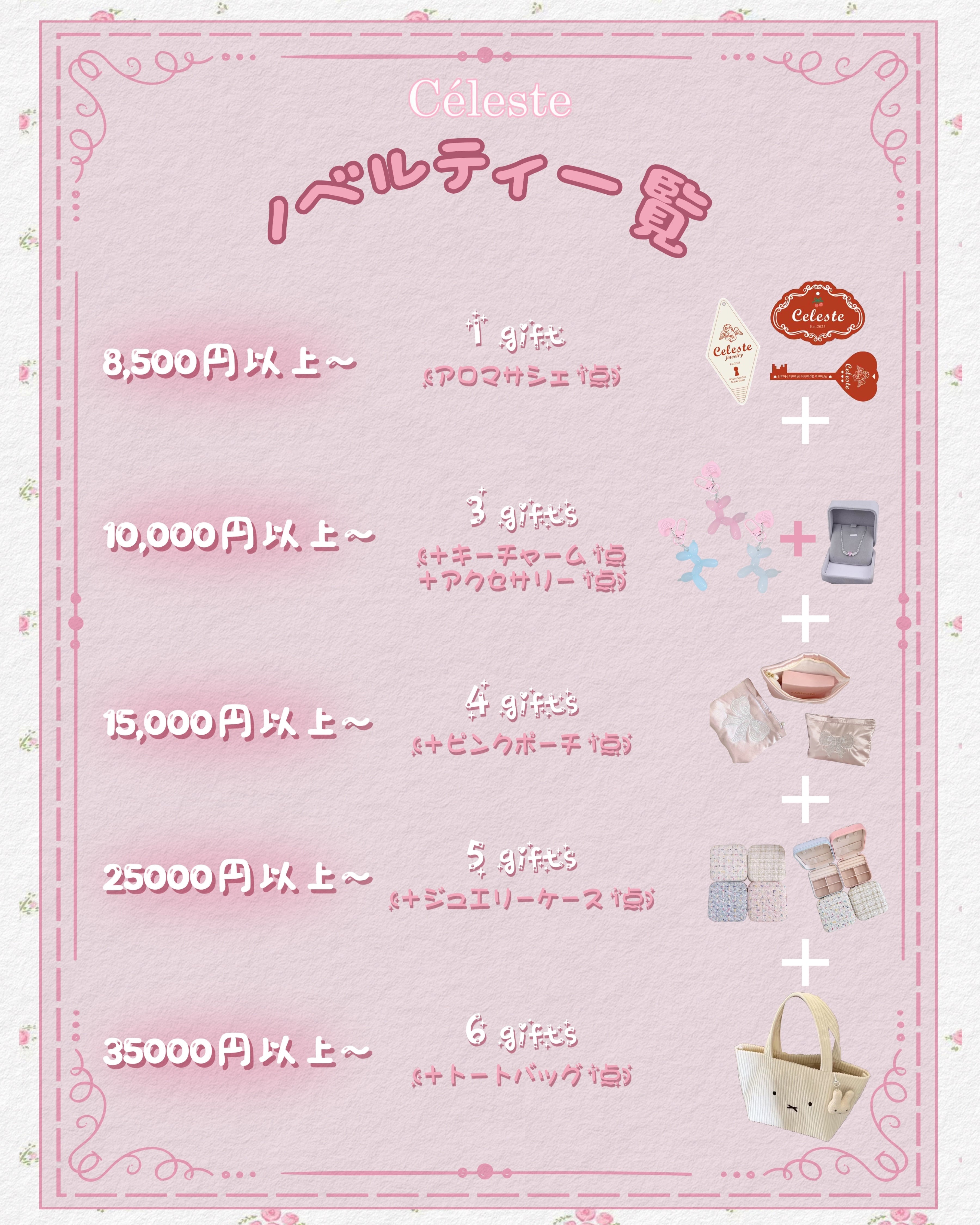 ノベルティの内容が段階的に増えていく形となっております。